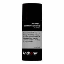 Denne allsidige oljen fra amerikanske Anthony er en favoritt blant de som verdsetter en behagelig og effektiv barbering. Den mykgjÞr skjegget ditt og forbereder huden, slik at barberingen blir tettere og mindre irriterende. Oljen kan ogsÄ brukes som skjeggolje for Ä temme og gi nÊring til skjegget. En blanding av naturlige oljer, som druekjerneolje, olivenolje og rosmarinolje, gir fuktighet, glans og en behagelig duft. Anthony Pre-Shave Oil passer for alle hudtyper.