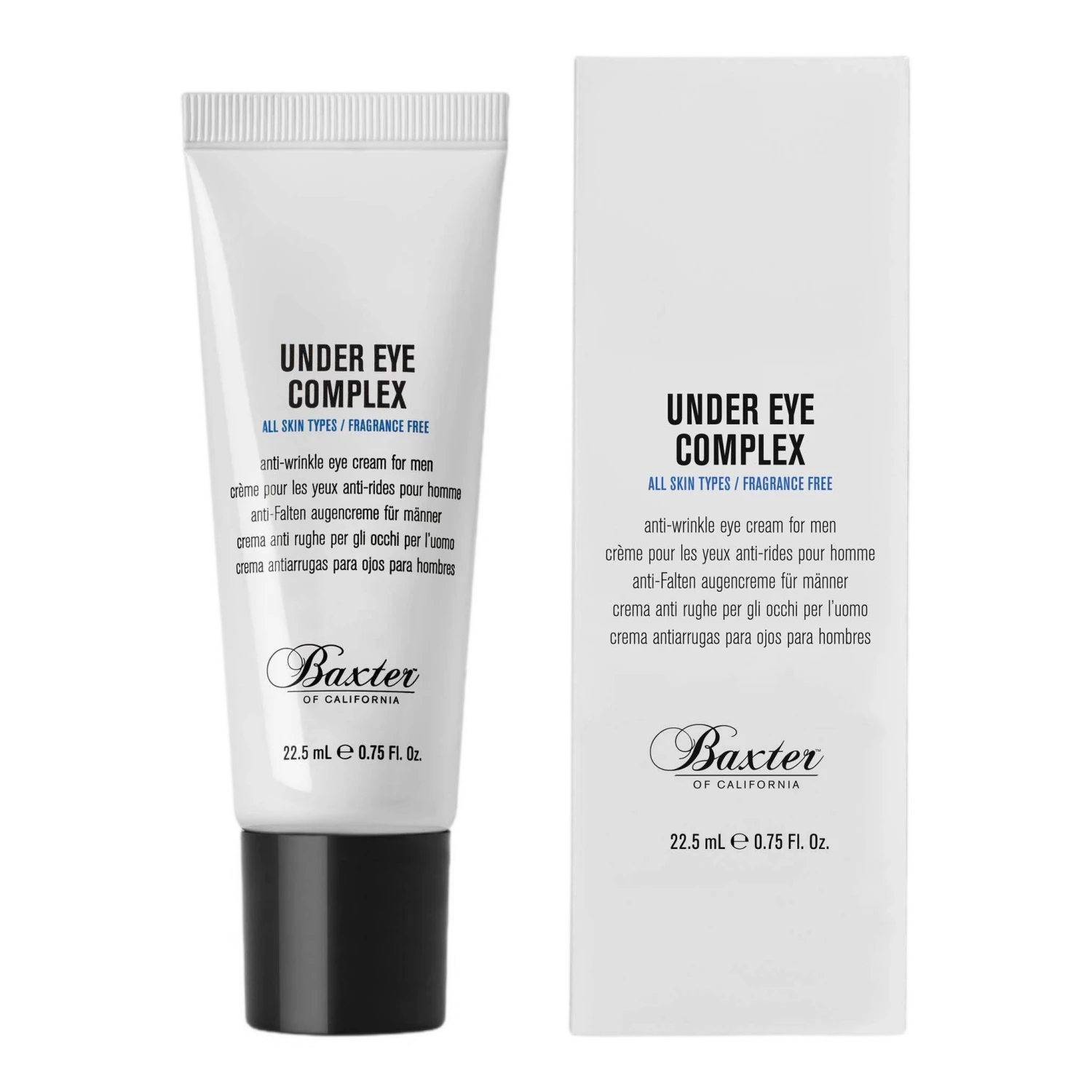 Bekjemp mÞrke ringer og fine linjer med denne prisvinnende Þyekremen fra amerikanske Baxter of California. Under Eye Complex er spesielt utviklet for den sensitive huden rundt Þynene, og jobber aktivt for Ä redusere synlige tegn pÄ tretthet og aldring. Den lette konsistensen absorberes raskt av huden uten Ä fÞles fet, og etterlater en matt finish. Beriket med koffein og hyaluronsyre, bidrar kremen til Ä redusere hevelser, minimere mÞrke ringer og gi huden en sunn glÞd. Vitamin E, Panthenol og bivoks pleier huden, og bekjemper frie radikaler. Under Eye Complex er fri for parabener, og passer for alle hudtyper.