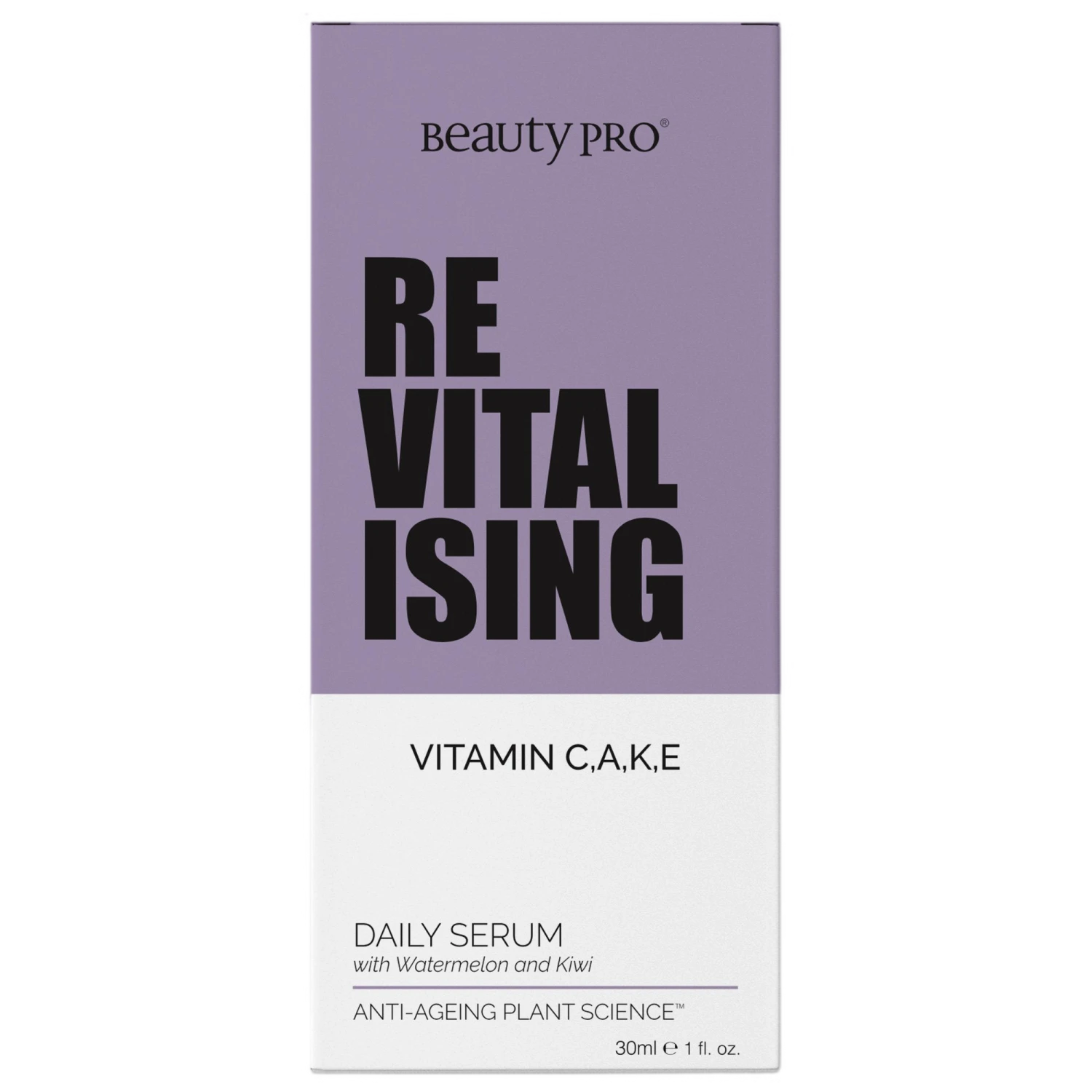 Dette ansiktsserumet fra Beauty Pro er en kraftfull blanding av nÞye utvalgte ingredienser som jobber sammen for Ä gi huden din den pleien den fortjener. Med en formel beriket med vitamin C, A, K og E, samt ekstrakter fra vannmelon, granateple, kiwi og Þkologisk limeolje, tilfÞrer serumet fuktighet og nÊring til huden. Det er spesielt utviklet for Ä fremme cellefornying, noe som bidrar til en jevnere og mer strÄlende hudtone.