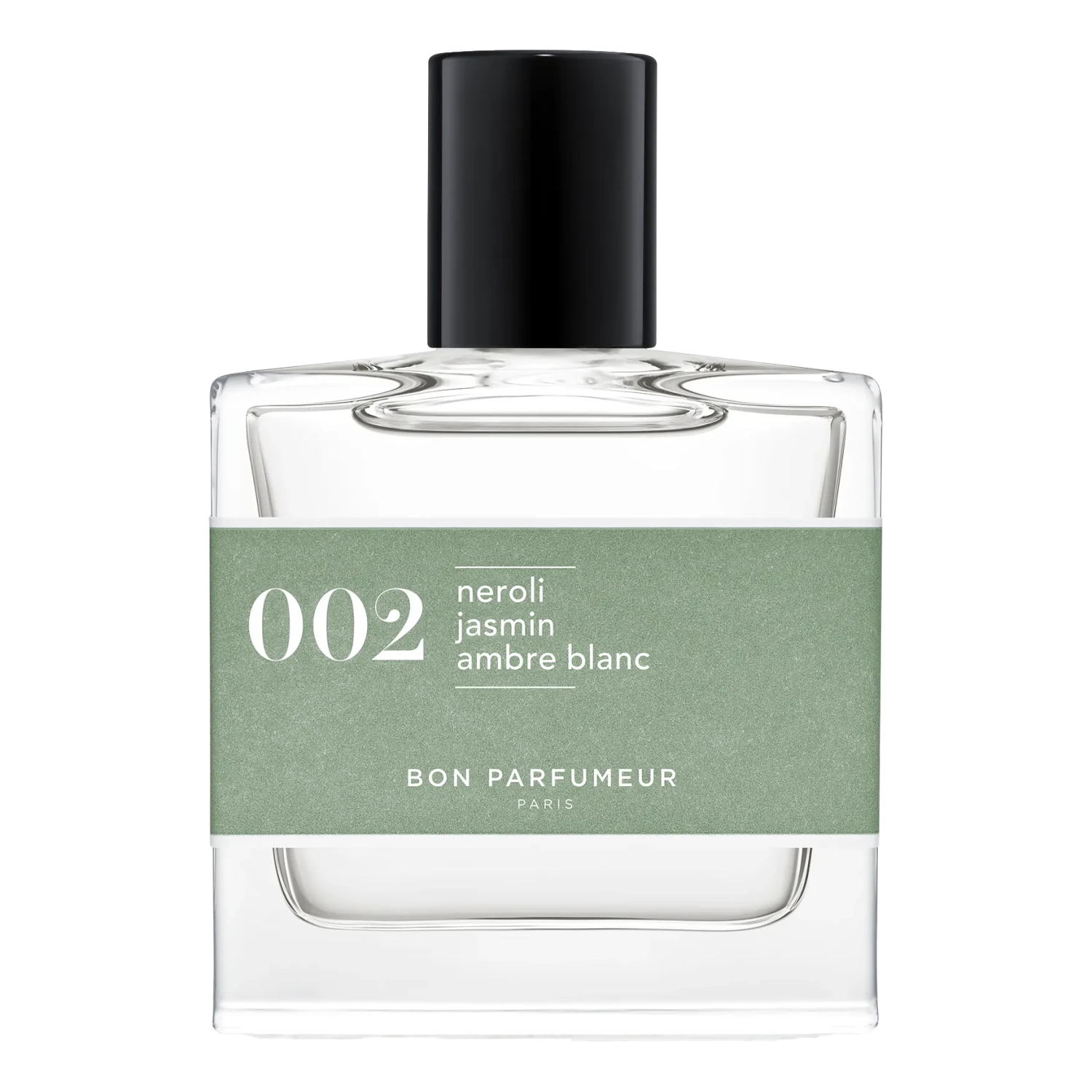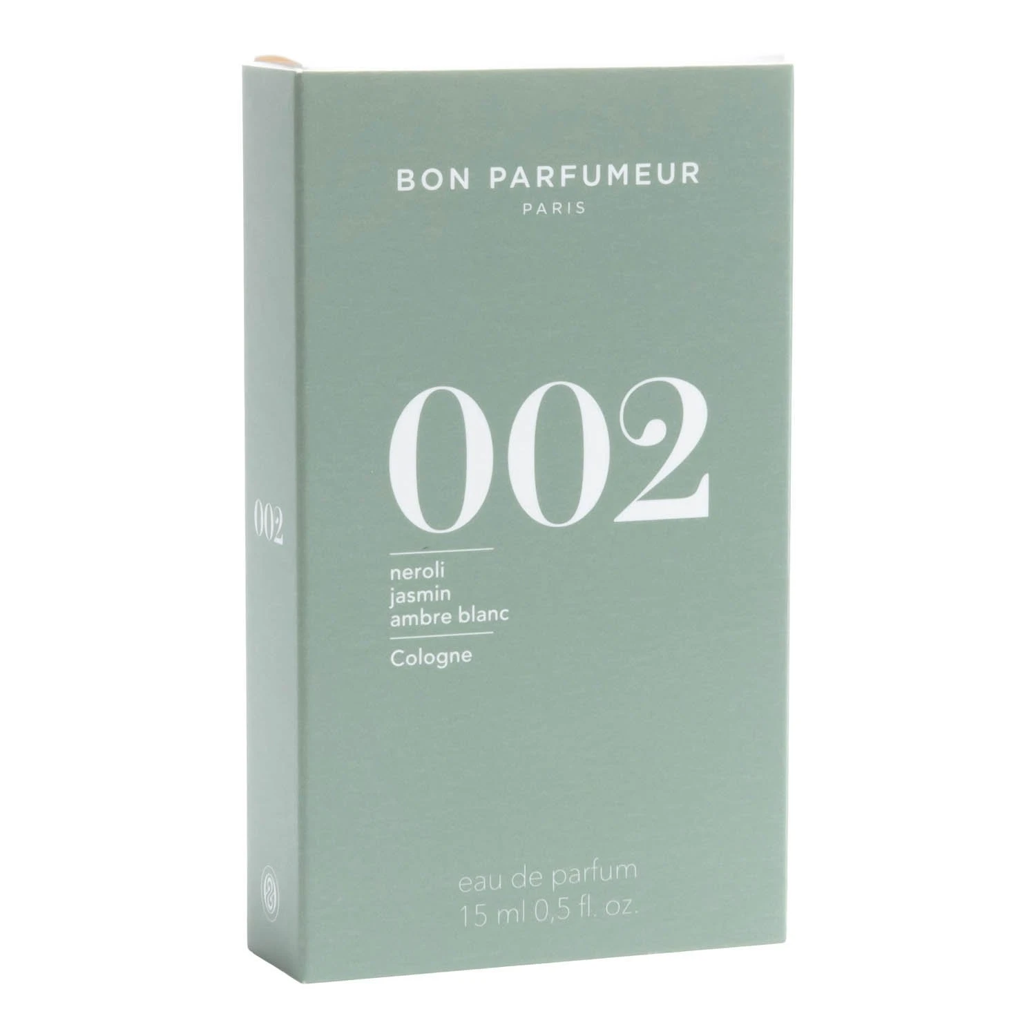 002 er i motsetning til de fleste andre produktene fra Bon Parfumeur en cologne og ikke en parfyme. Dette betyr at den har en lavere konsentrasjon av ren parfyme. Vi anbefaler 002 som en «base» til kombinasjon med andre parfymer fra Bon Parfumeur, eller for deg som foretrekker en mindre fremtredende duft.
