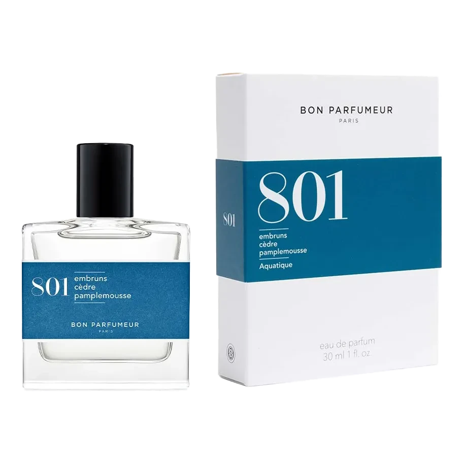801 kan beskrives som en salt sjÞsprut pÄ en steinete strand med drivved som tÞrker i sola. Passer for deg som liker maritime dufter med nyanser fra tÞrt tre og et hint av sitrus. Duftene fra Bon Parfumeur er unisex og kan brukes av bÄde kvinner og menn. Noen vil tradisjonelt sett kanskje passe bedre til kvinner og andre til menn. Vi oppfordrer imidlertid til Ä tenke utenfor boksen og gir ikke noen fÞringer pÄ hvem som skal kunne bruke hva.