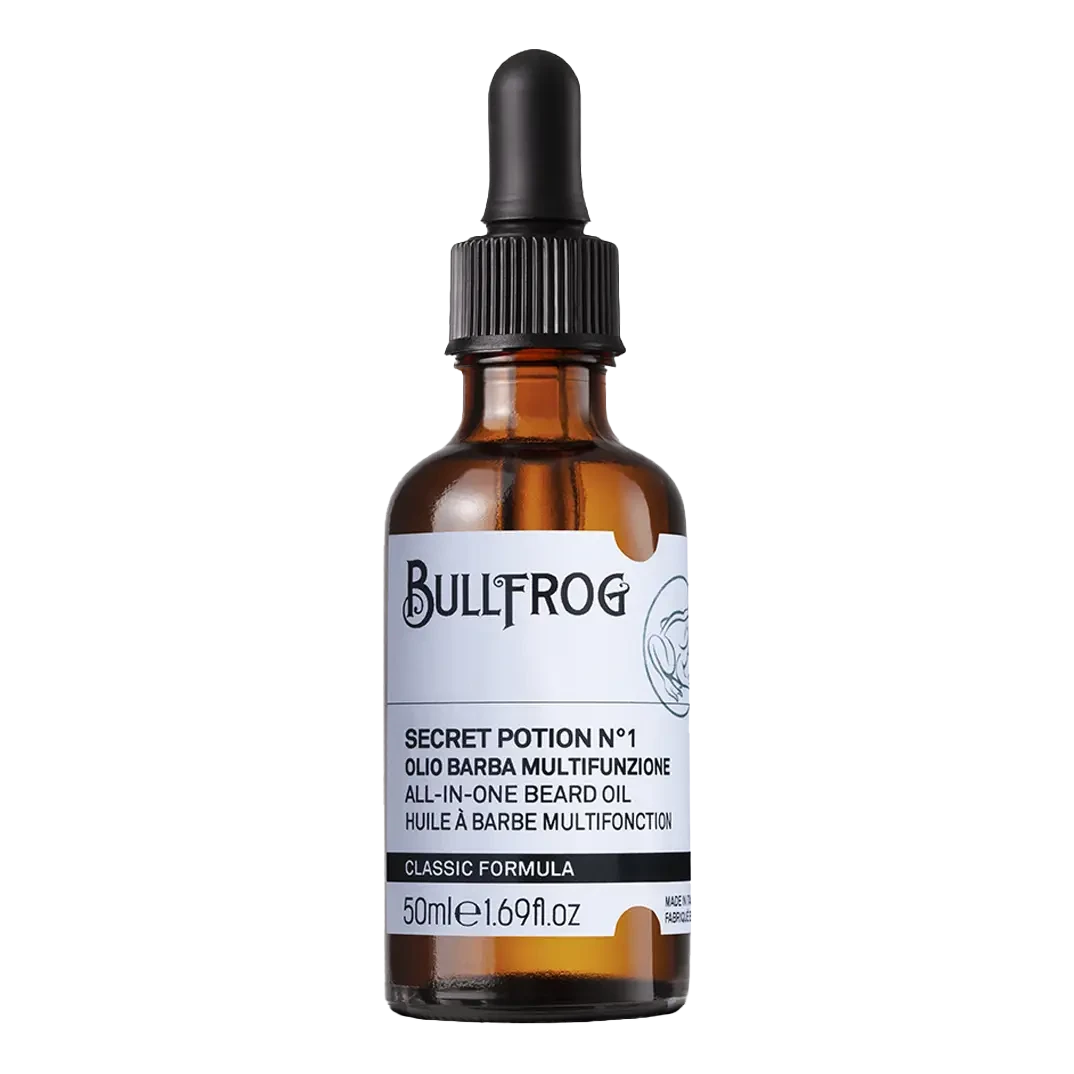 Bullfrog All-in-One Beard Oil Secret Potion N.1 er en italiensk skjeggolje som gir deg den ultimate skjeggpleien. Denne allsidige oljen er utviklet for Ă„ mykgjĂžre, temme og gi nĂŠring til skjegget ditt, samtidig som den gir en behagelig duft. Den lette formelen absorberes raskt uten Ă„ tynge skjegget, og etterlater en sunn glans og en myk fĂžlelse.