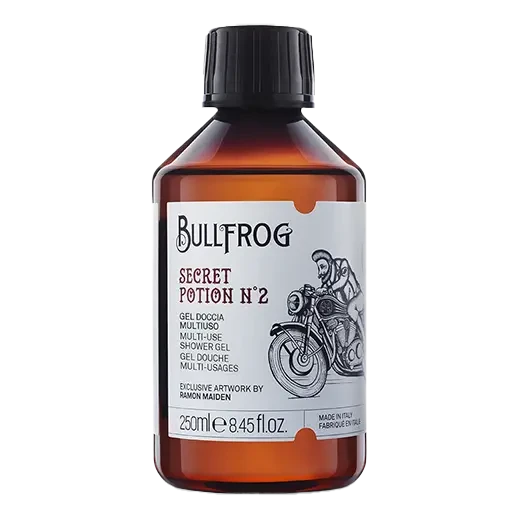 Denne multi-action dusjgeléen fra italienske Bullfrog er en annen alt-i-ett-løsning for den moderne mannen. Secret Potion N.2 kan brukes til både hår, ansikt og kropp, og gir en effektiv og skånsom rengjøring. Den er beriket med naturlige ingredienser som etterlater huden frisk og revitalisert, og håret rent og glansfullt. Duften er inspirert av den mystiske atmosfæren i kunstneren Ramon Maidens studio, med en spennende blanding av krydder og amber.