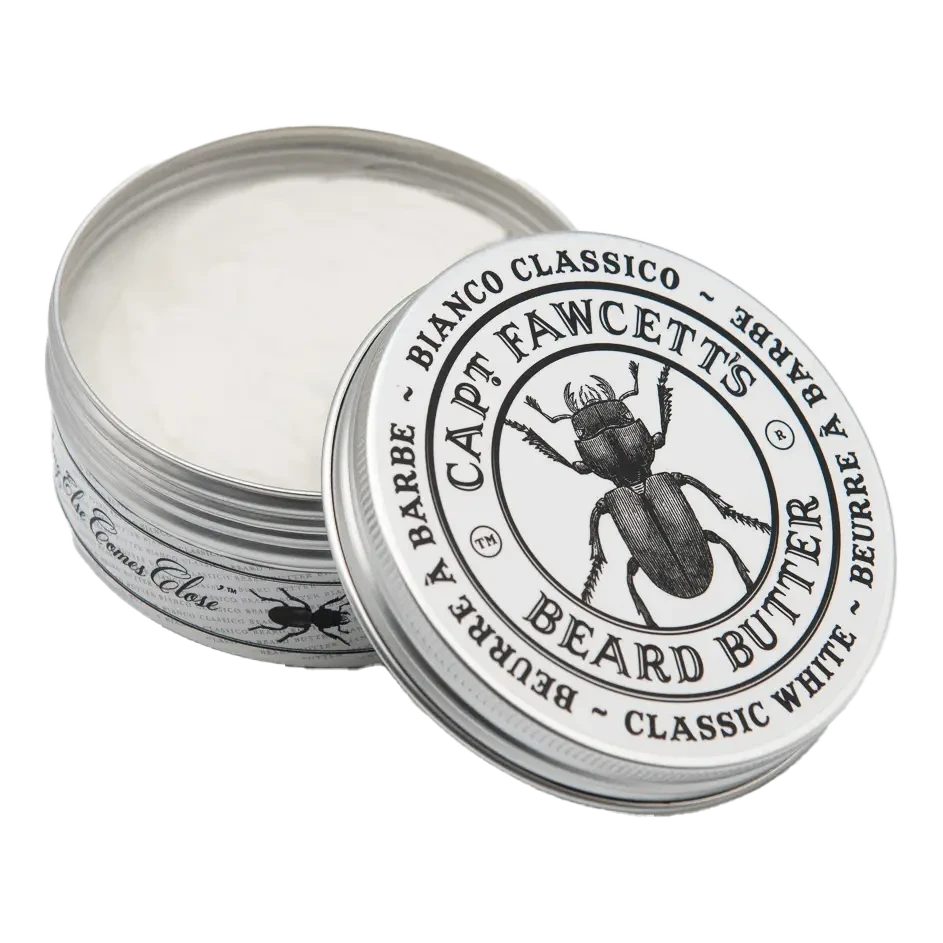 Bianco Classico skjeggpomade fra britiske Captain Fawcett kombinerer fordelene fra sheasmÞr og sÞt mandelolje, og er en rik blanding for dyp fuktighetsbehandling av skjegget ditt. Denne vitaminrike, kremete formelen spres jevnt utover ansiktshÄret, uten Ä etterlate fete produktrester. Den hjelper med Ä forhindre tÞrrhet, krus og brudd, beroliger huden under, og fremmer sunn hÄrvekst. Pomaden gir et lett hold og subtil glans, og gjÞr skjegget lettere Ä forme og style. Da den er formulert for Ä passe alle skjeggtyper, egner den seg aller best for de med grÄtt, hvitt eller platinafarget hÄr.