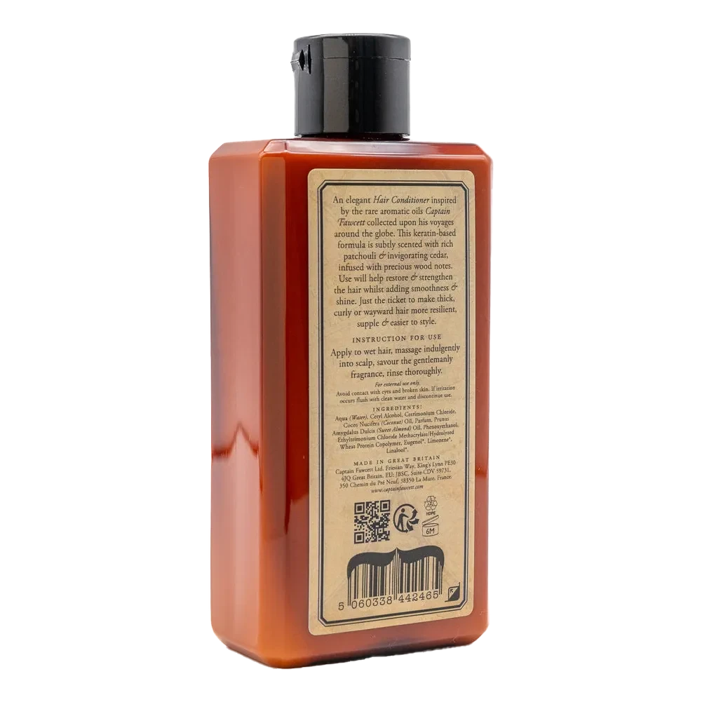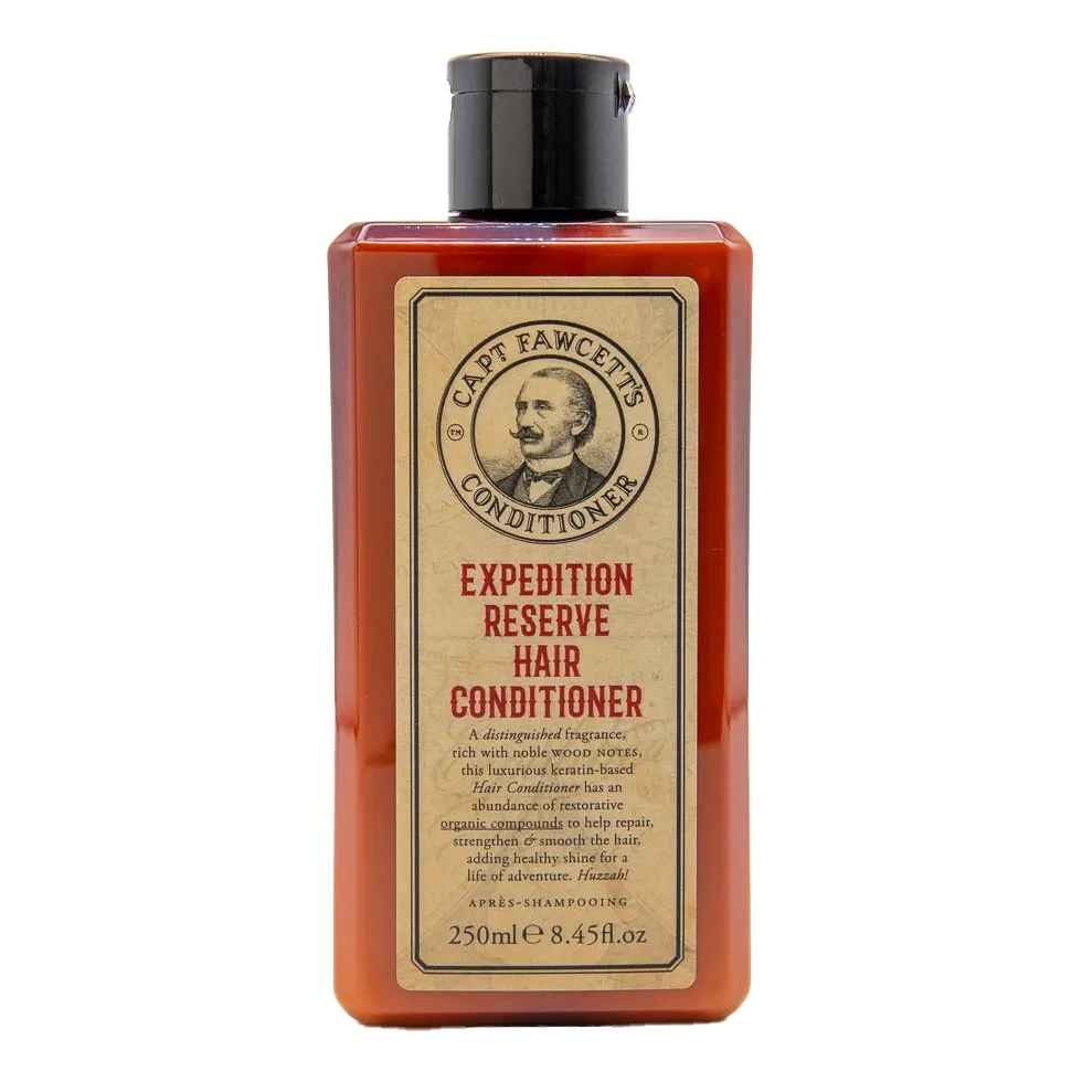 Captain Fawcetts Expedition Reserve hÄrbalsam har en en nÊringsrik, keratinbasert formel, som hjelper til med Ä gjenopprette og styrke hÄret. PÄ samme tid tilfÞrer den glatthet og glans, og gjÞr hÄret smidigere og lettere Ä style. Beriket med mandel- og kokosolje har den en mykgjÞrende og pleiende effekt. Balsamen er inspirert av, og basert pÄ de skjelne aromatiske oljene Kaptein Fawcett samlet pÄ de verdensomspennende ekspedisjonene sine. Duften av rik Patchouli, oppkvikkende seder og treaktige noter, gjenspeiler dette.