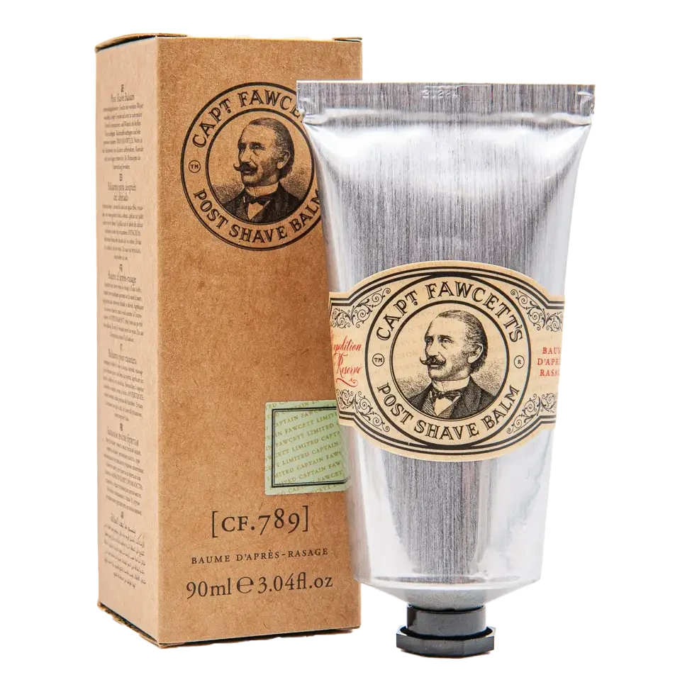 Denne etterbarberingskremen fra britiske Captain Fawcett i reisestĂžrrelse, er en reding for irritert hud etter barbering! Den inneholder blant annet Vitamin E, shea- og kokossmĂžr som fukter huden, samt hvete og jojoba-olje som lindrer og pleier. Captain Fawcett’s Post Shave Balm absorberes raskt uten Ă„ etterlate en fet hinne, og den subtile duften av furunĂ„l, elemi, kumin og koriander gir en frisk og maskulin fĂžlelse. I hjertenoten finner du frankincense, patchouli og tobakk, mens basenoten byr pĂ„ en rik blanding av sandeltre og amber. Etterbarberingskremen kommer i en stilig tube med vintage-inspirert design, og med sin reduserte stĂžrrelse er den praktisk Ă„ ta med pĂ„ tur. Alt i alt er den en glimrende avslutning pĂ„ barberingsrutinen din!