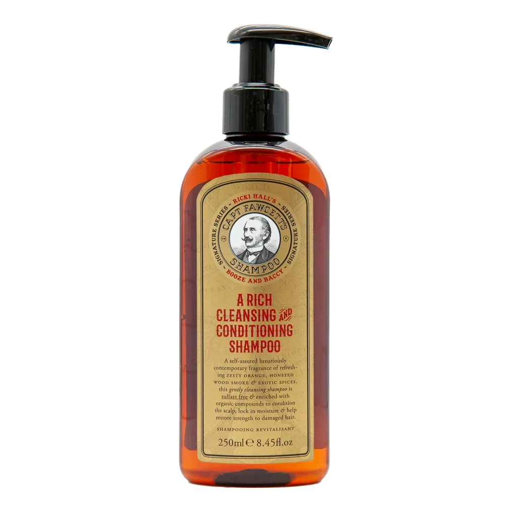 HĂ„rsjampo fra Captain Fawcett i deres mest populĂŠre duftserie, Booze & Baccy! Sjampoen rengjĂžr hĂ„ret og etterlater det mykt og velduftende! Liker du skjeggoljen i samme serie, er denne midt i blinken for deg!Â