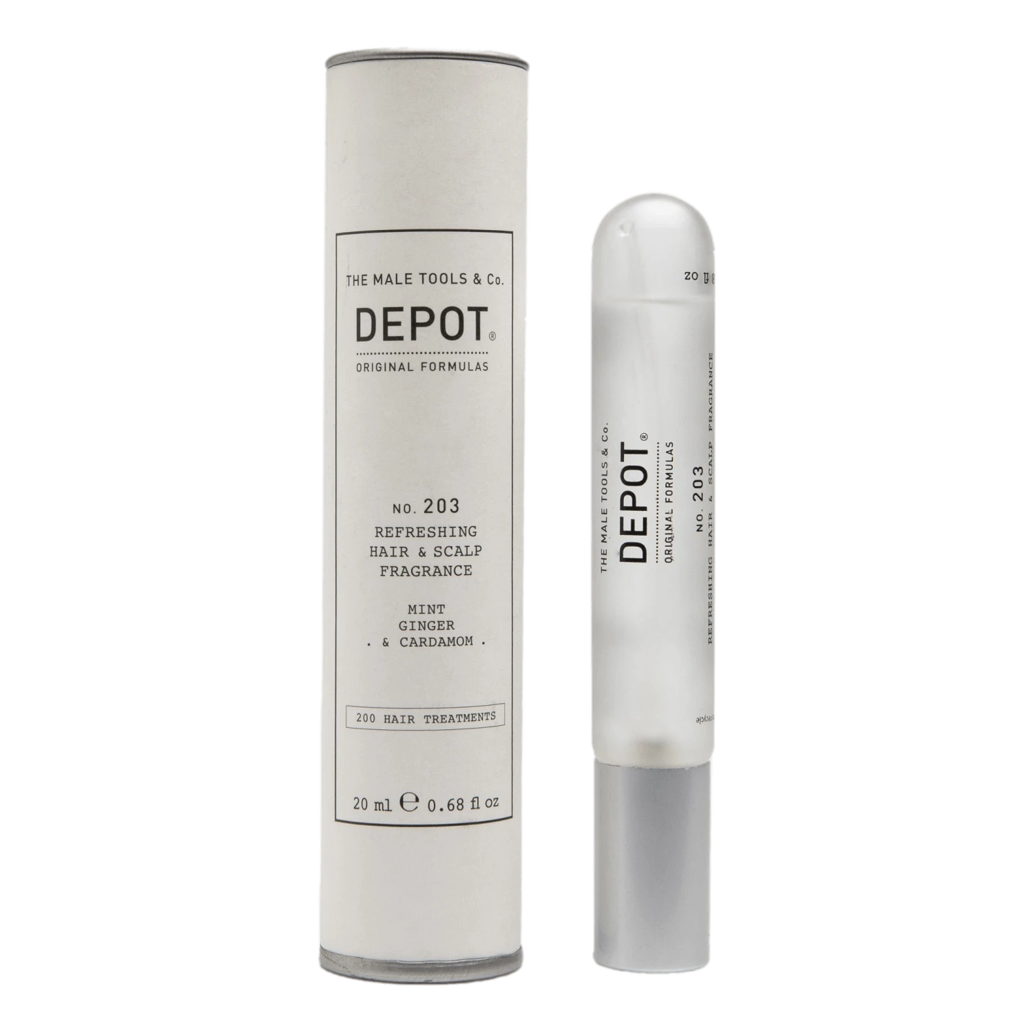 Godlukt som frisker opp hĂ„ret fra Depot – The Male Tools & Co. Alle produkter i 200-serien er til hĂ„rpleie, og No. 203 fjerner vond lukt fra hĂ„r og hodebunn og tilfĂžrer et behagelig hint av mynte, ingefĂŠr og kardemomme.
