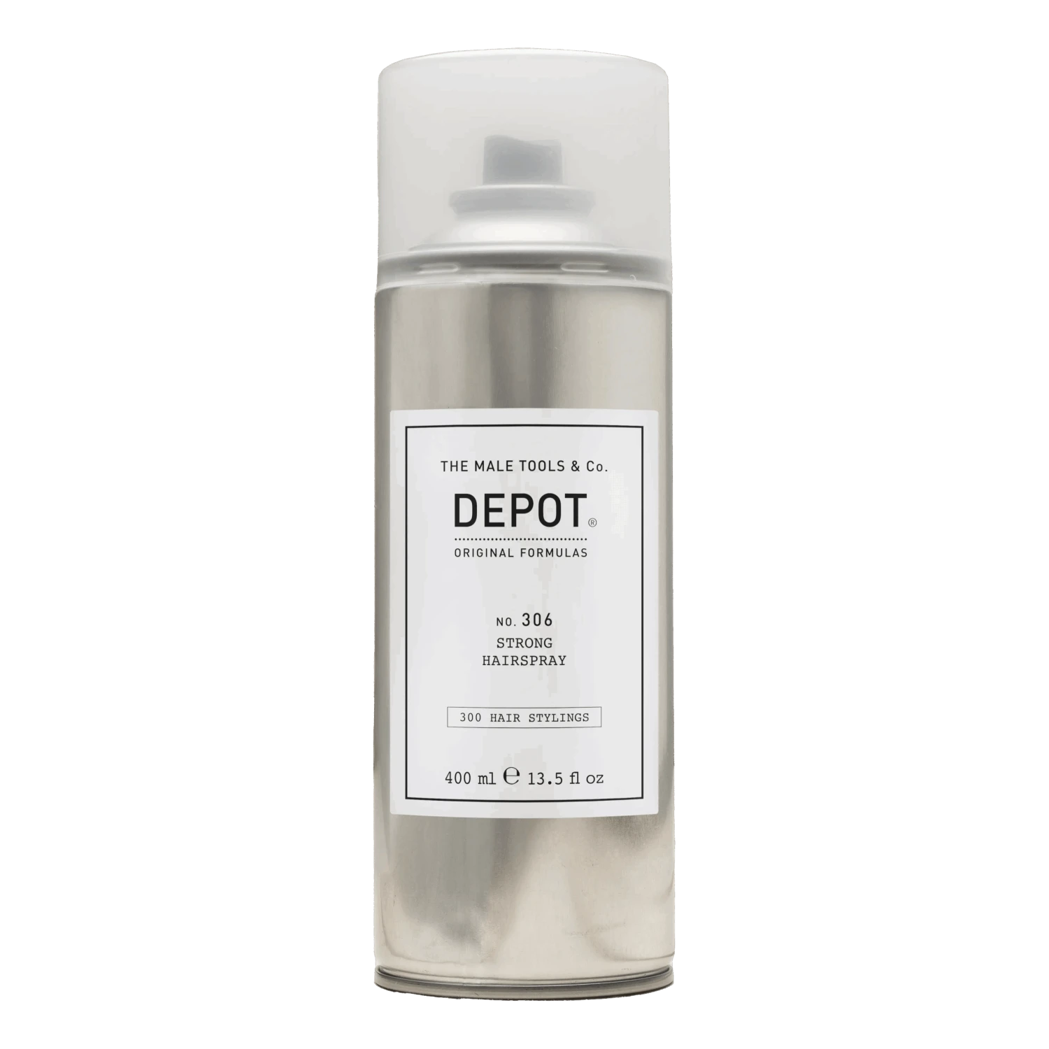 HĂ„rspray fra Depot – The Male Tools & Co. Alle produkter i 300-serien er til hĂ„rstyling, og No. 306 holder hĂ„ret pĂ„ plass etter at du har stylet det med andre produkter.