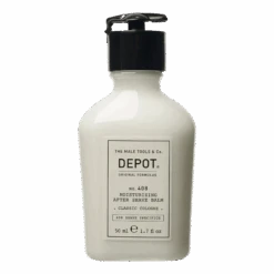 Fuktighetsgivende etterbarberingskrem fra Depot – The Male Tools & Co. Alle produkter i 400-serien er til barbering, og No. 408 er en aftershave som lindrer huden etter barbering samt gjenoppretter fuktighetsbalansen. Kan enten brukes alene eller etter etterbarberingsvann for den komplette spa-opplevelsen.
