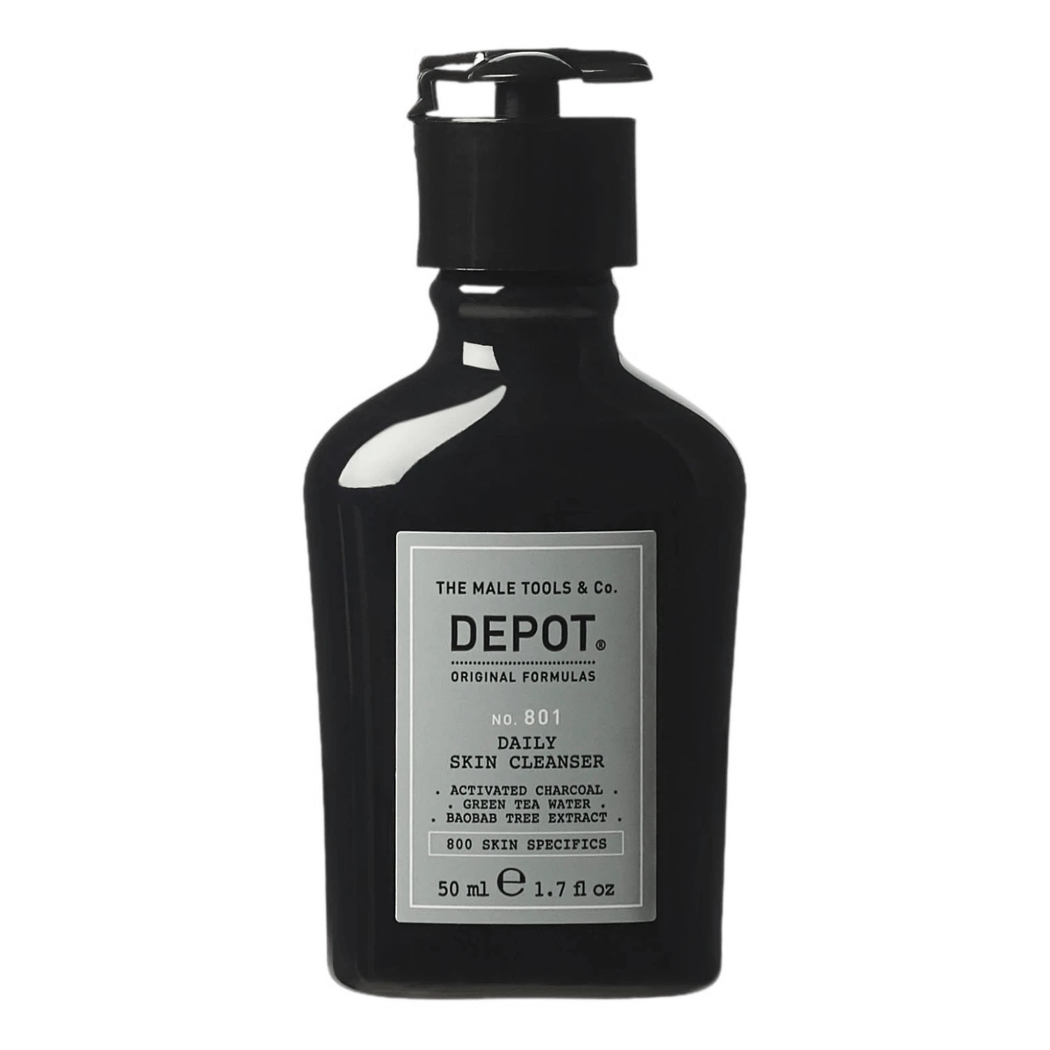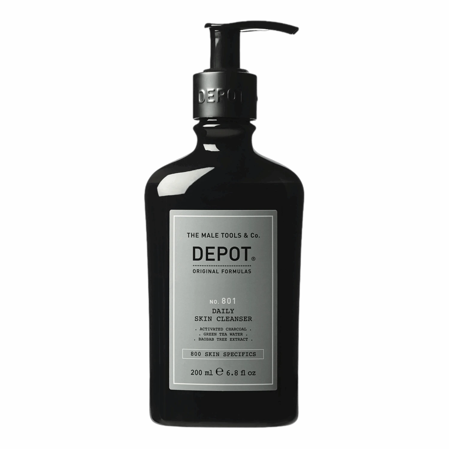 Rensende gel fra Depot – The Male Tools & Co. Alle produkter i 800-serien er til hudpleie, og No. 801 rengjĂžr, dyprenser og regulerer fet hud. Formulert med aktivert kull, milde, overflateaktive stoffer og hĂ„ndplukkede fuktighetsgivere.