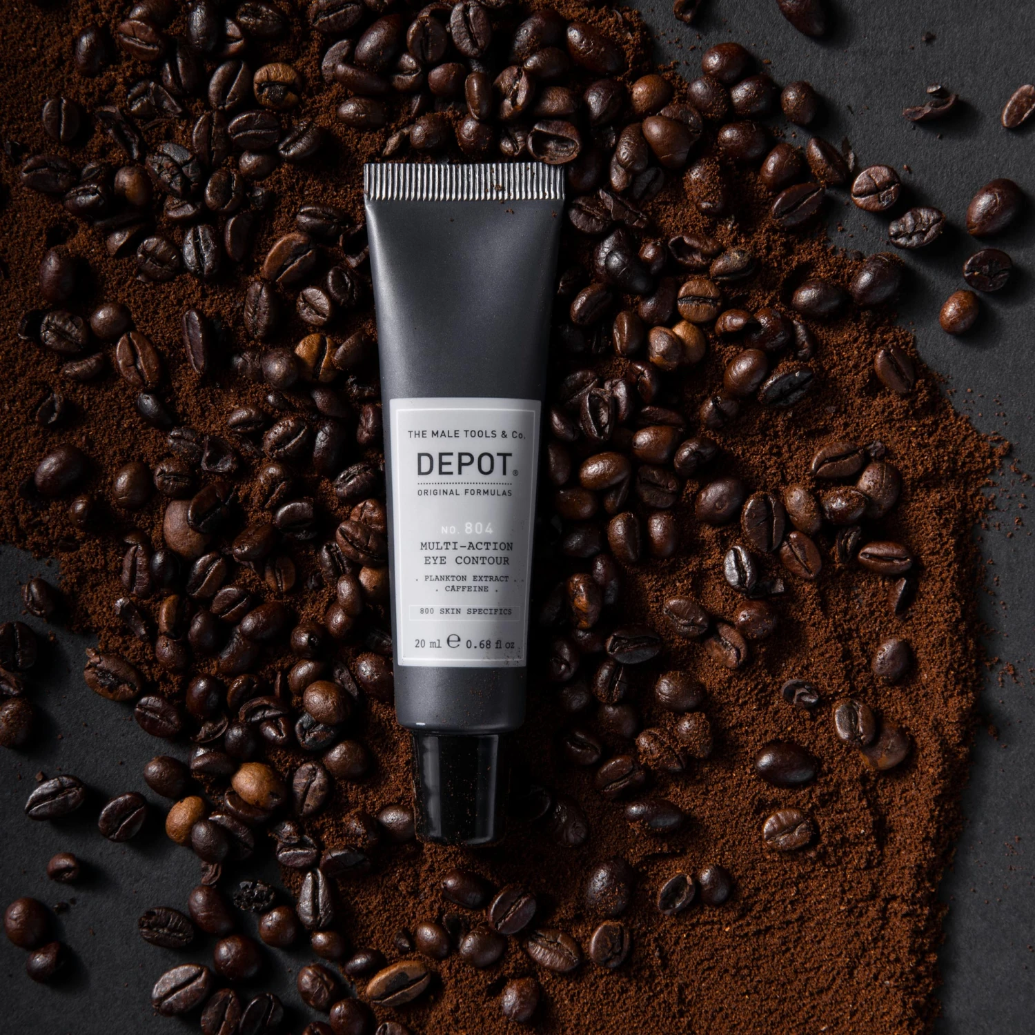 Oppfriskende øyekrem fra Depot – The Male Tools & Co. Alle produkter i 800-serien er til hudpleie, og No. 804 forynger og tilfører fuktighet til huden under øynene. Dette området har aller tynnest hud og er gjerne der tegn på aldring dukker opp først.