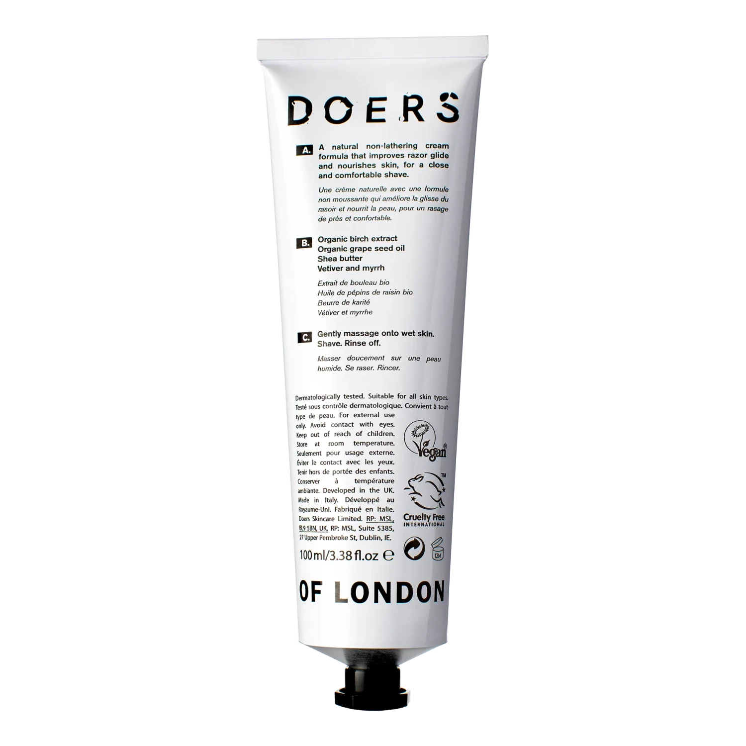 Denne barberkremen fra Doers of London er utviklet for Ä gi en behagelig og skÄnsom barbering. Den skummefrie formelen gjÞr det enkelt Ä pÄfÞre kremen direkte pÄ ansiktet, enten med hendene eller en barberkost. Dette reduserer friksjonen mellom barberbladet og huden, noe som minimerer irritasjon og gir en mer behagelig opplevelse.
