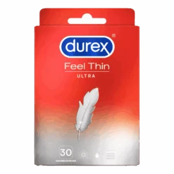 Durex Ultra Thin kondomer gir en uovertruffen opplevelse av nÊrhet og fÞlsomhet. Med en tykkelse som er 20 % tynnere enn standardkondomer, er disse kondomene designet for Ä gi deg og din partner en mer intens og naturlig fÞlelse under samleie. Den konturerte formen sikrer en perfekt passform, noe som gjÞr dem enkle Ä ta pÄ og komfortable Ä bruke.
