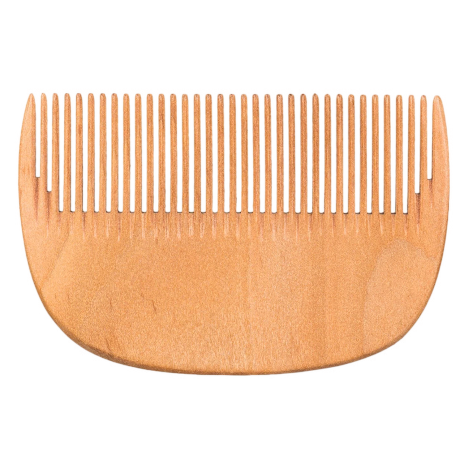 Skjeggkam med pÊretreskaft med eksklusiv kam, designet med lange, kraftige tenner som effektivt retter ut skjegget, enten det er til daglig styling eller nÄr du skal trimme det. Den brede gripeflaten gir deg et godt og sikkert grep, noe som gjÞr det enklere Ä forme og style skjegget.