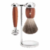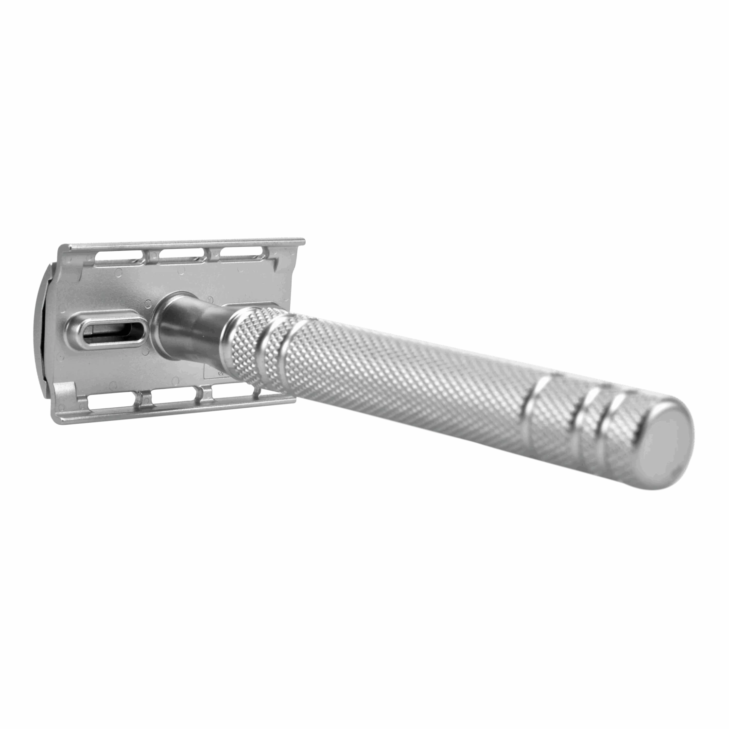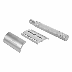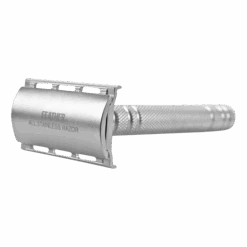 Materialet er rustfritt stål, som ikke bare gir et elegant utseende, men også sikrer holdbarhet og lang levetid. Det tidløse designet utstråler diskret luksus, noe som gjør denne høvelen til et perfekt valg for connoisseuren. I tillegg følger det med et stativ i samme utsøkte utførelse som høvelen, som gir et stilfullt preg til badet ditt.