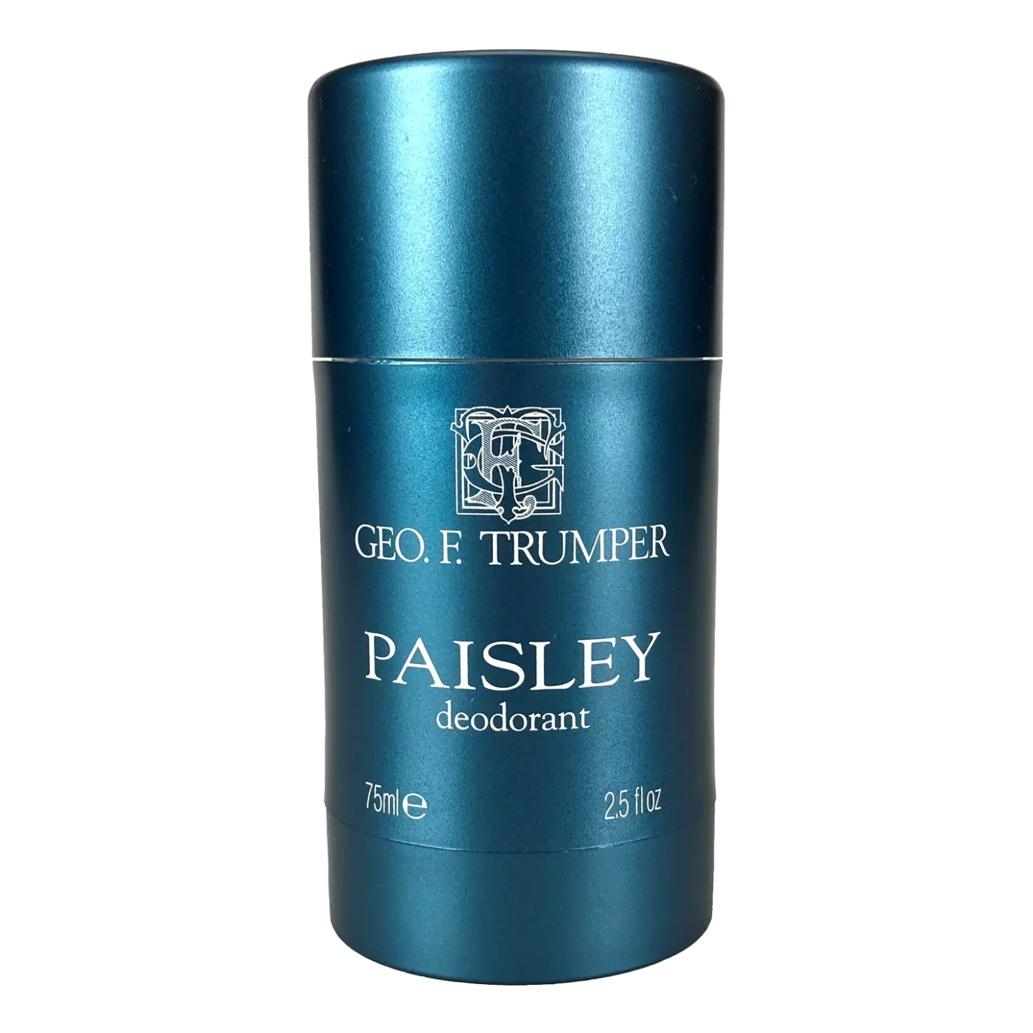 En glyserinbasert deodorant med vitamin E fra tradisjonelle Geo F. Trumper. Paisley er en eksotisk duft med noter av kardemomme, pepper og spearmint som hviler pĂ„ vetiver og geranium, balansert med stjerneanis og patchouli. Avsluttes med en lett og subtil duft av appelsin og sitrus.Â
