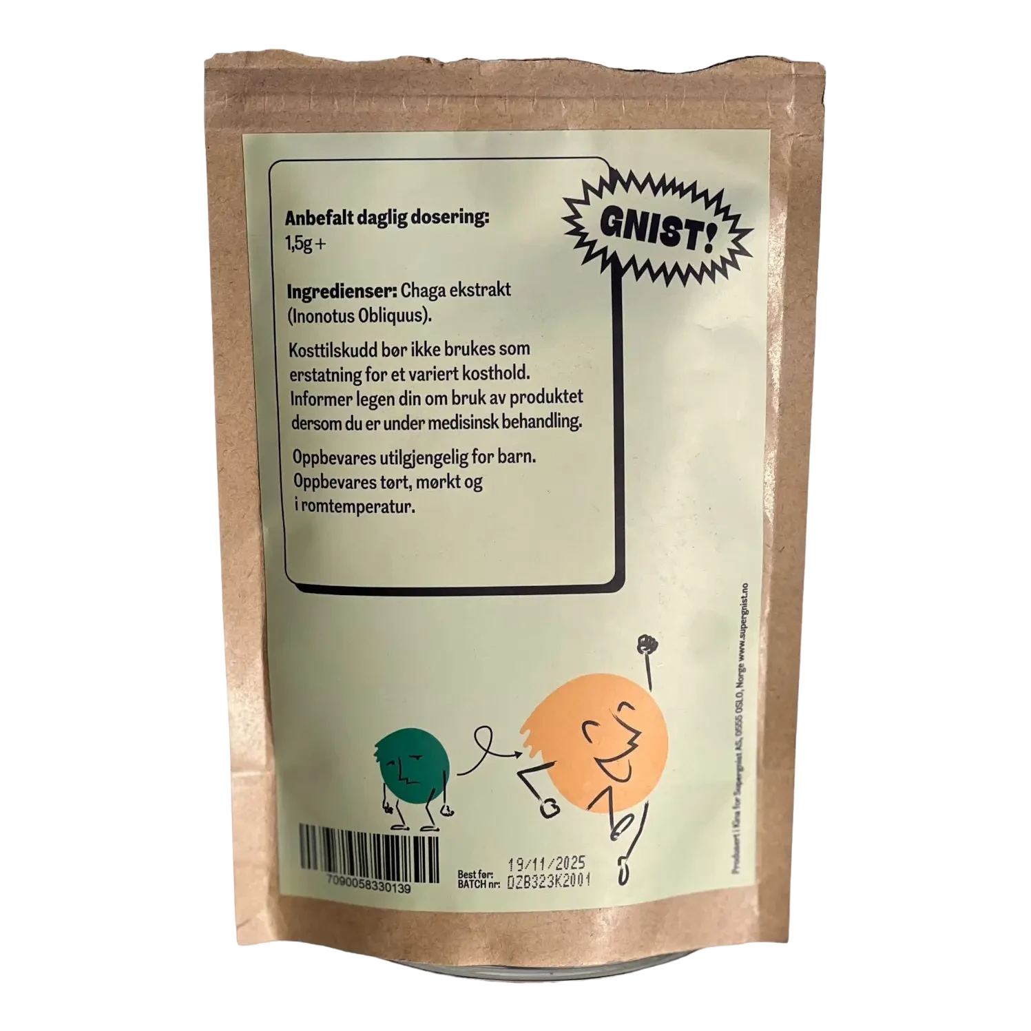 GNIST! Chaga gir suveren styrke – ekstraktet vĂ„rt er sterkt konsentrert som betyr en svĂŠrt hĂžy konsentrasjon av aktive komponenter