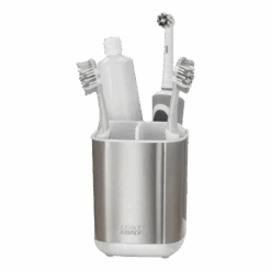 Lei av et rotete bad? Joseph Joseph EasyStore⹠Tannglass er en smart og kompakt lÞsning for oppbevaring av tannbÞrster og andre munnpleieprodukter. Med sitt stilrene design i rustfritt stÄl, ser det ogsÄ fint ut!