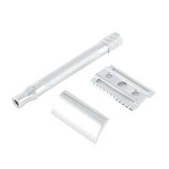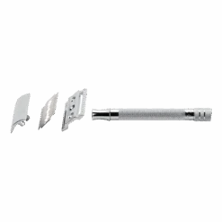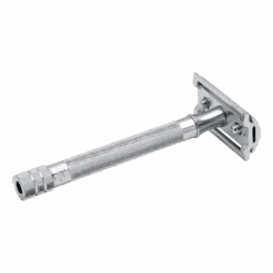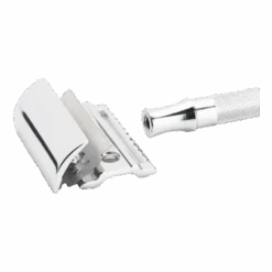 Barberhøvelen har Merkurs klassiske barberhode med lukket kam som gir en skånsom, allround shave uten å bli for pågående. Denne høvelen bruker helt standard, tradisjonelle barberblader.