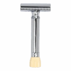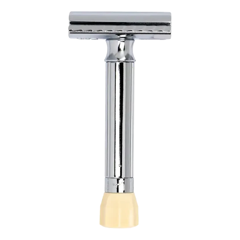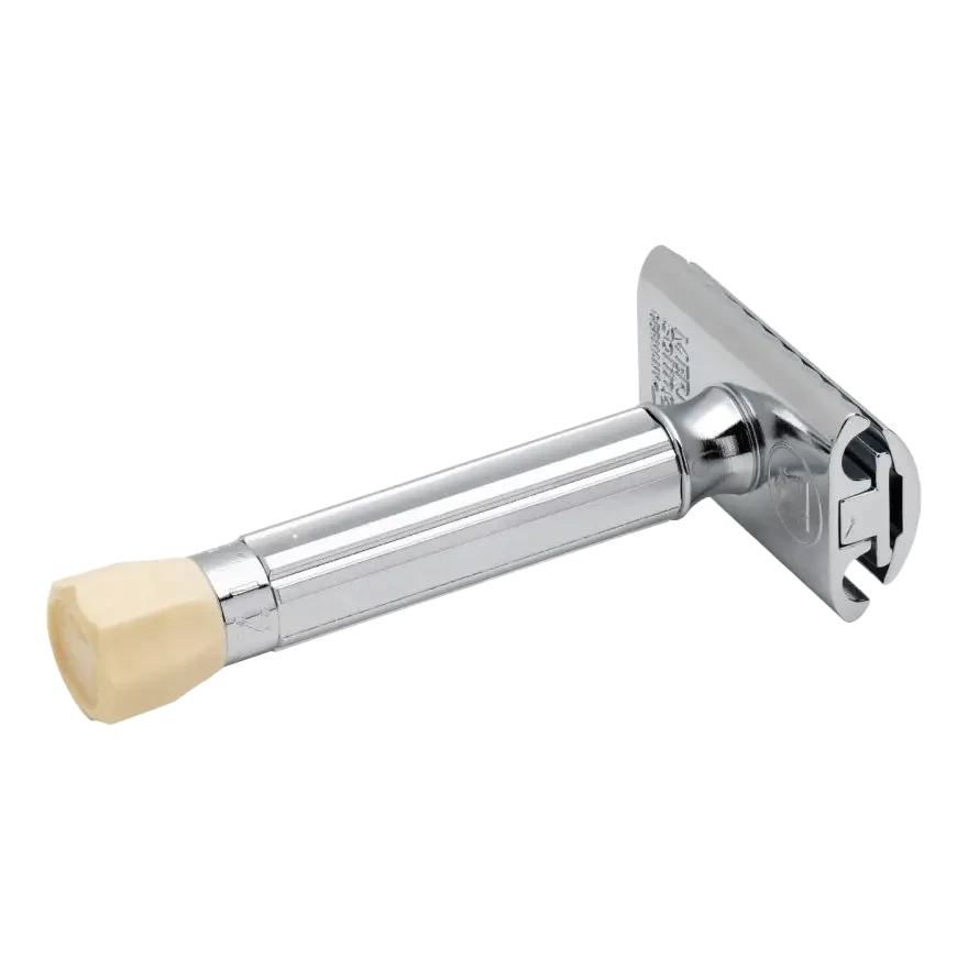En populær tradisjonell barberhøvel med justerbart hode. Kan stilles inn med ulike trinn og derfor tilpasses din hudtype. Høvelen er støpt av messing og har en glanspolert kromfinish. Føles god og solid i hånden, og ser svært stilig ut.