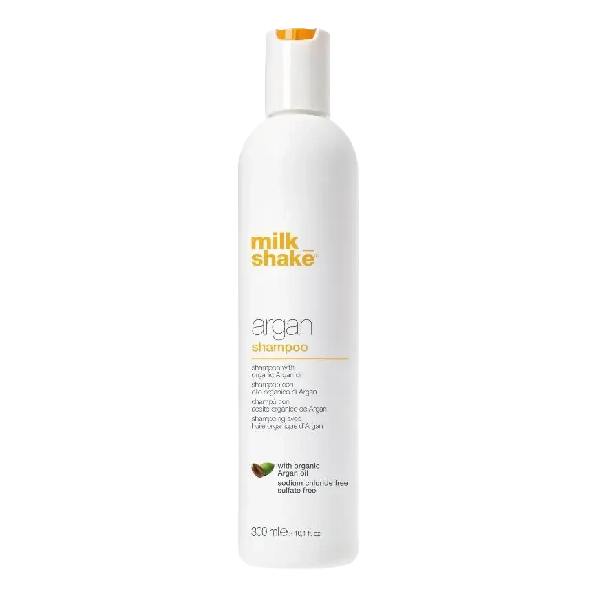 Milk_shake Argan Oil Shampoo er en skÄnsom sjampo som er formulert for Ä gi hÄret ditt den pleien det fortjener. Denne sjampoen inneholder Þkologisk arganolje, kjent for sine fuktighetsgivende og nÊrende egenskaper. Den renser hÄret forsiktig uten Ä strippe det for naturlige oljer, takket vÊre sin sulfat- og saltfrie formel. HÄret ditt vil oppleve en merkbar mykhet og glans etter hver vask.