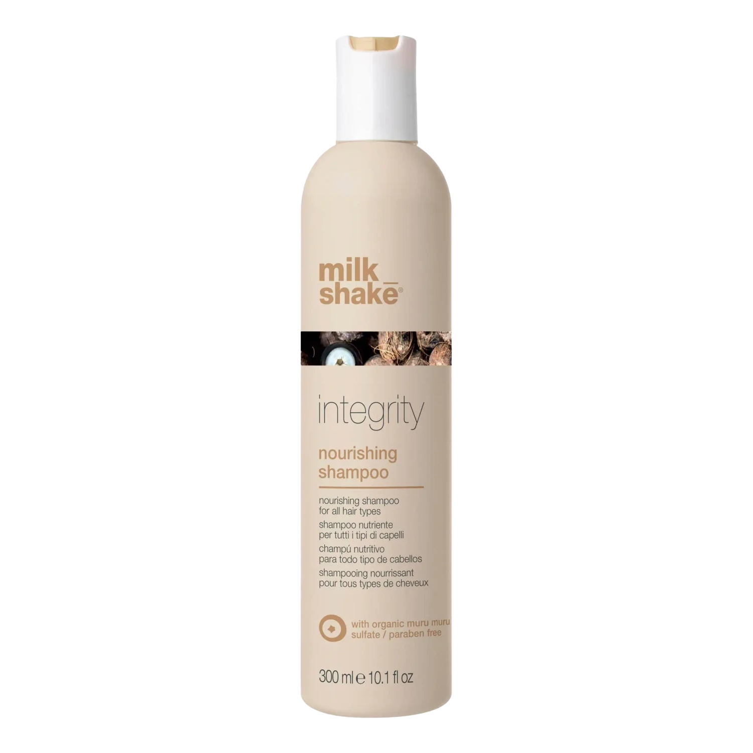 Milk_shake Integrity Nourishing Shampoo er en nÊringsrik sjampo utviklet for Ä gi dyptgÄende pleie til alle hÄrtyper. Formulert med Þkologisk muru-muru-smÞr, bidrar denne sjampoen til Ä bekjempe rufs og etterlater hÄret mykt og skinnende. Den rike sammensetningen renser hÄret skÄnsomt uten Ä strippe det for farge eller nÊringsstoffer, noe som gjÞr den ideell for daglig bruk.