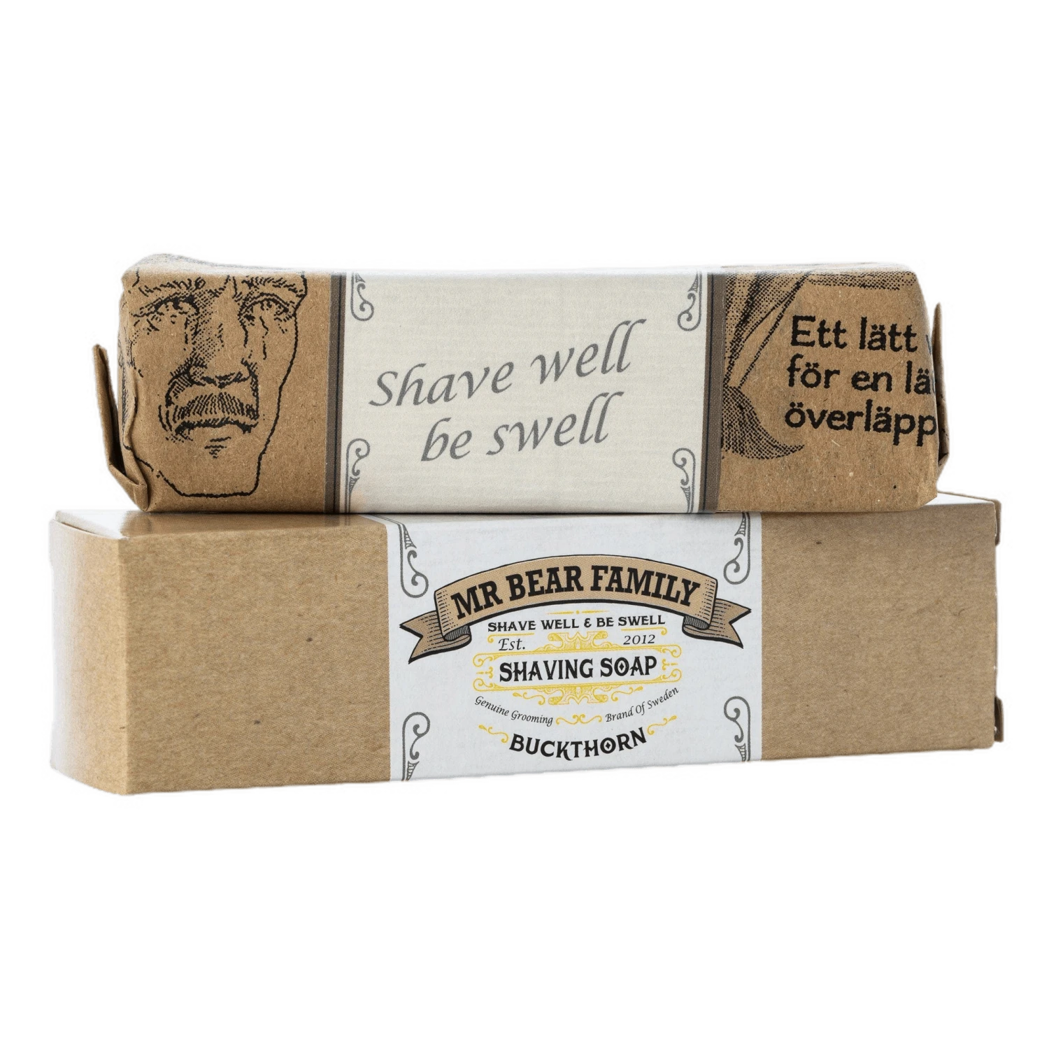 BarbersĂ„pe fra svenske Mr Bear Family! BarbersĂ„pen er forholdsvis myk og du kan enten ta endestykket og gni i ansiktet, og deretter skumme opp med en vĂ„t barberkost, eller knekke av en bit og klemme den ned i barberskĂ„len din.Â