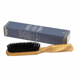 Denne skjeggbørsten er produsert av oliventre og hår er fra villsvin. Villsvinhår er ypperlig fordi de distribuerer de naturlige oljene jevnt gjennom skjegget. Bruker du skjeggbørsten jevnlig vil du merke at skjegget blir mindre tørt.