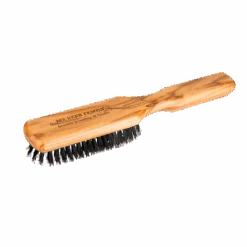 Denne skjeggbørsten er produsert av oliventre og hår er fra villsvin. Villsvinhår er ypperlig fordi de distribuerer de naturlige oljene jevnt gjennom skjegget. Bruker du skjeggbørsten jevnlig vil du merke at skjegget blir mindre tørt.