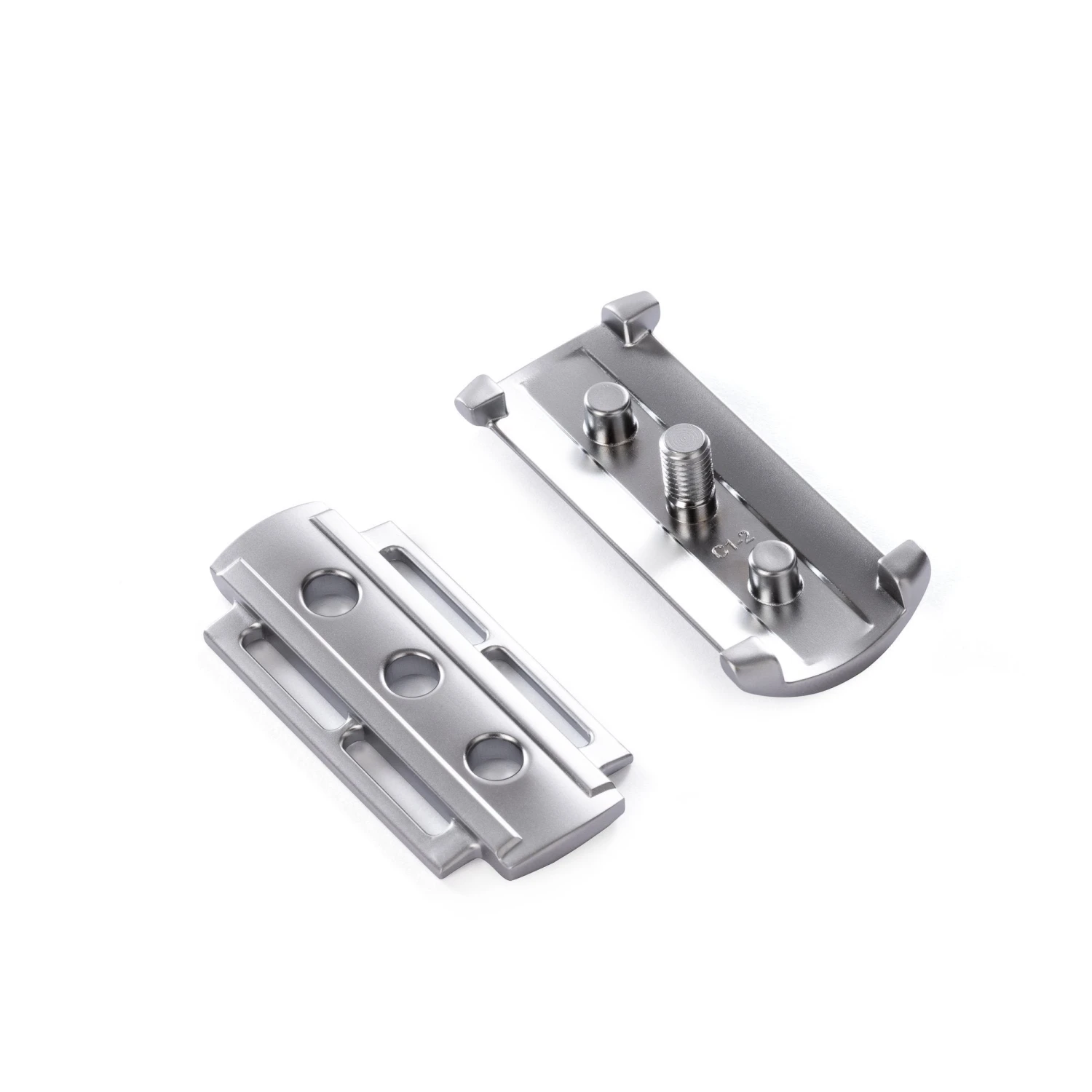 - «Hode» som er designet for å hjelpe med å gi riktig vinkel på barberhøvelen (30°-50°) og lukke bladet på sidene.