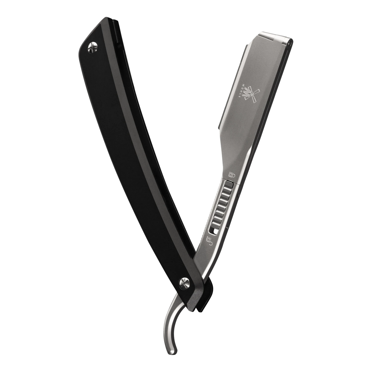 Presis, fleksibel, tidløs. Den første barberkniven fra Mühles nye Enthusiast-serie er spesielt egnet for profesjonell bruk på grunn av det utskiftbare bladet. Men Enthusiast Pro overbeviser også den tradisjonsbevisste brukeren hjemme med sin funksjonalitet og kvalitet. Modellen er kompatibel med alle standard barberblader som knekkes i to.