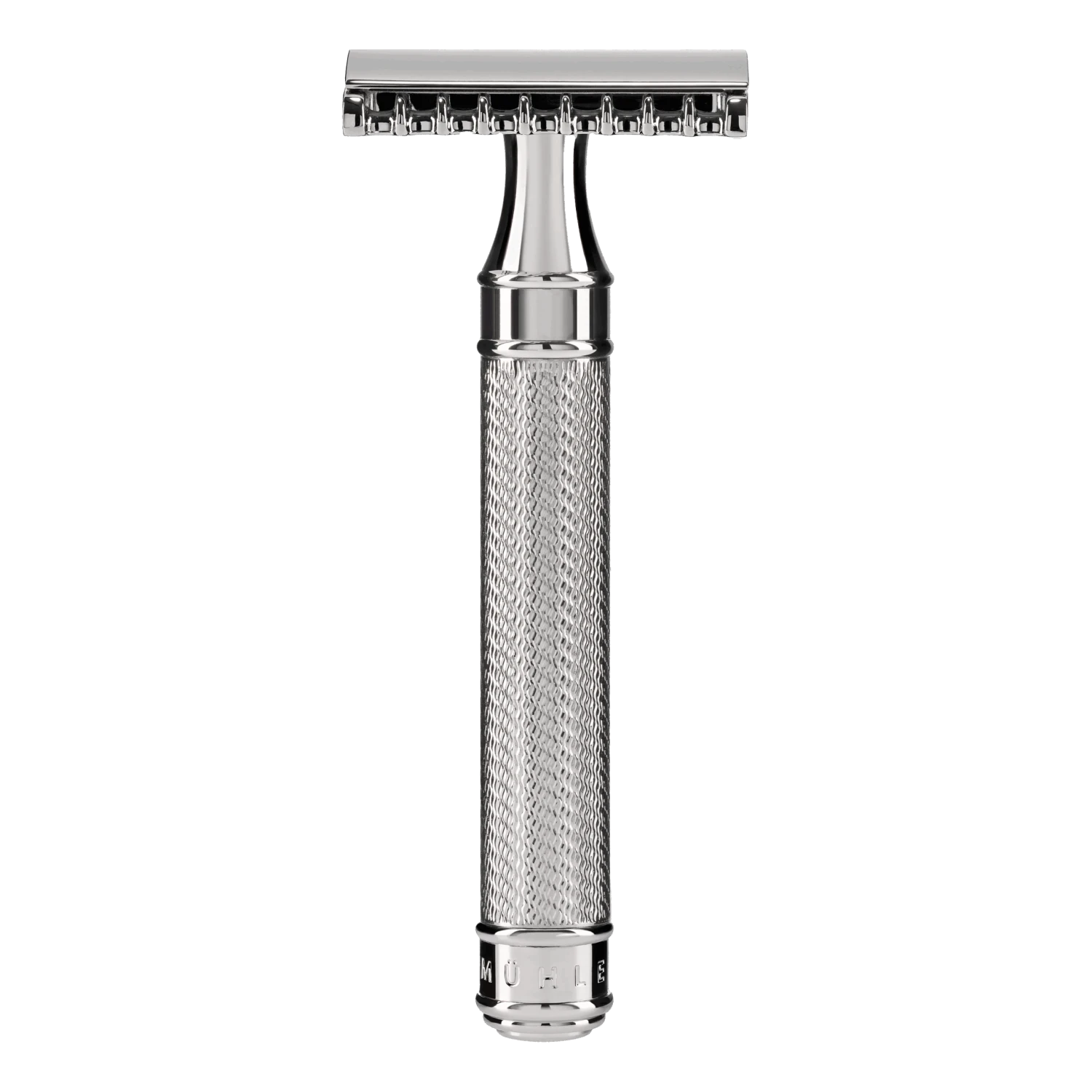 Mühle R41 Grande har et lengre og tykkere skaft enn modellene R41/R89. Videre har R41 Grande et hode med «åpne tenner». Dette gjør at denne barberhøvelen er mer aggressiv enn de fleste. For deg med kraftig skjeggvekst kan dette være en fordel, men vær obs på at høvelen vil være noe vanskeligere i bruk enn våre andre modeller. Vi anbefaler ikke å begynne med denne barberhøvelen dersom du ikke har erfaring med tradisjonell barbering fra før.