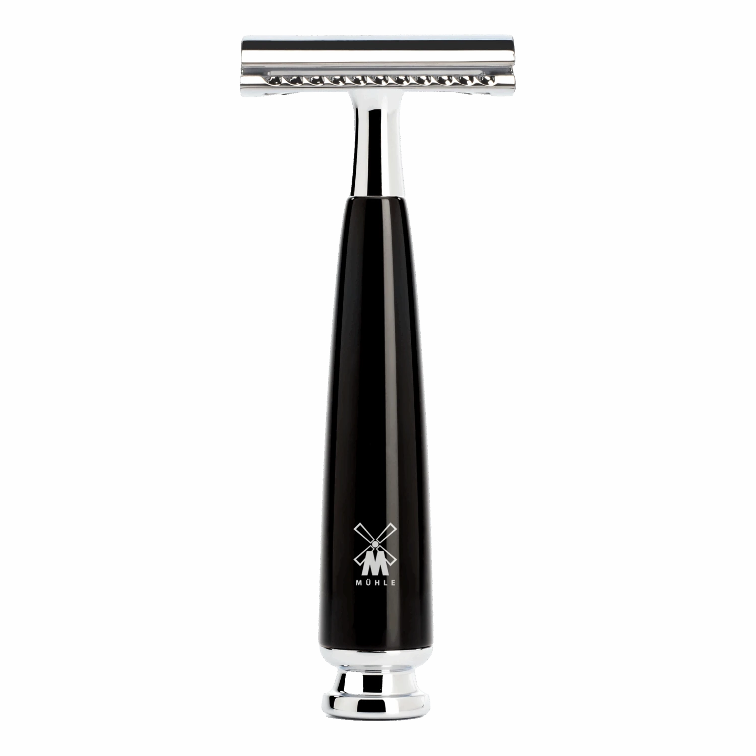 En tradisjonell barberhøvel fra tyske Mühle. Lekre kromdetaljer gir en fin kontrast til skaftet. En solid barberhøvel du kan ha glede av i år etter år! Kan brukes med alle typer tradisjonelle barberblader, som både gir en meget god barbering, og er svært billige. Vi har tusenvis av fornøyde kunder som har droppet flerbladshøvler og nå får en bedre, billigere og morsommere barbering!