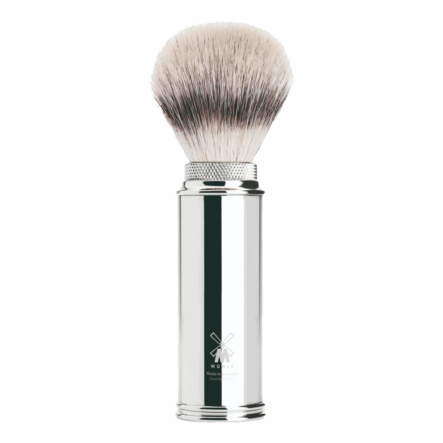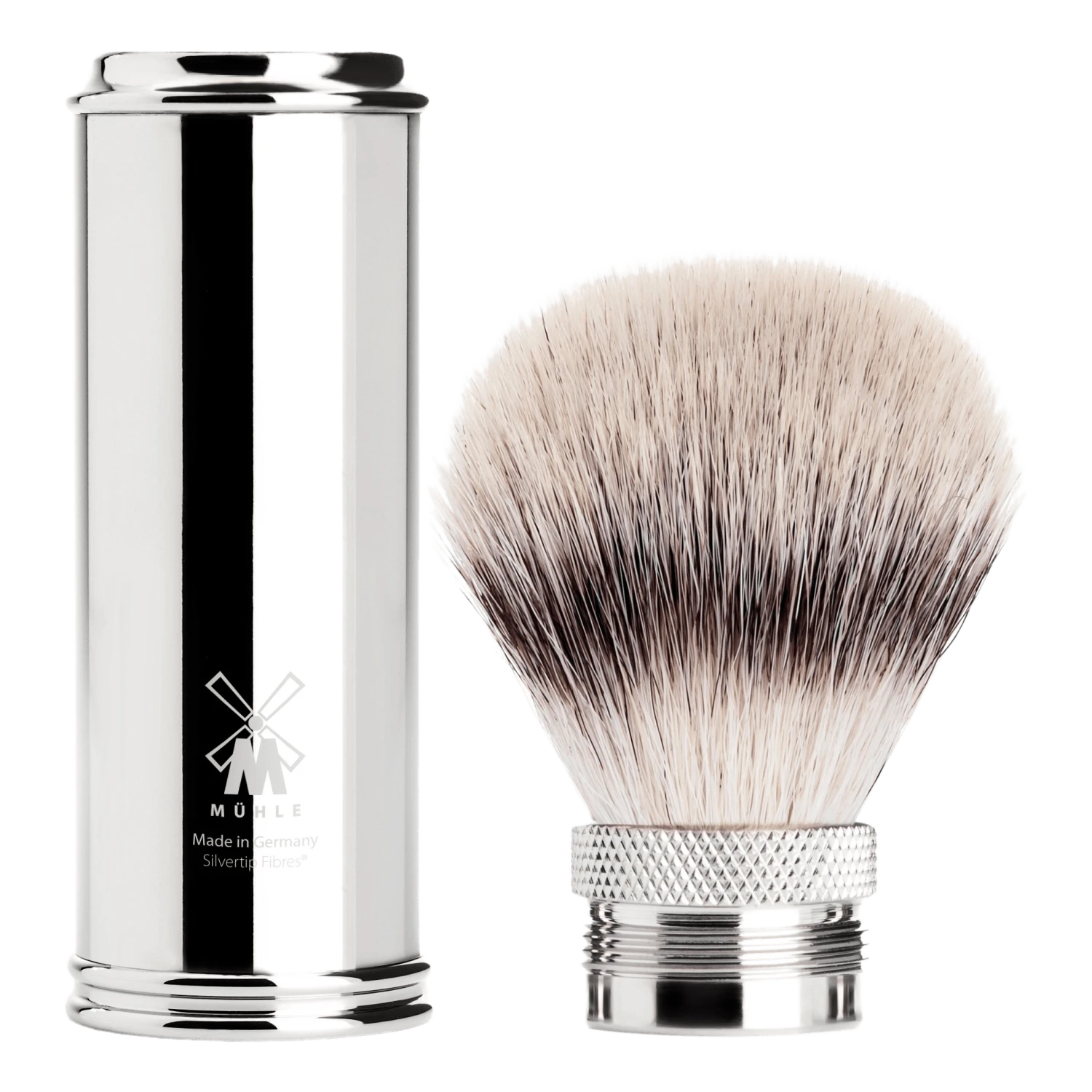 En kompakt reisebarberkost i forkrommet messing fra tyske MĂŒhle. Barberkosten er lett, enkel Ă„ sette sammen, og tar lite plass i bagasjen. Det smarte designet gjĂžr at barberkosten kan tĂžrke mens den oppbevares i hĂ„ndtaket.