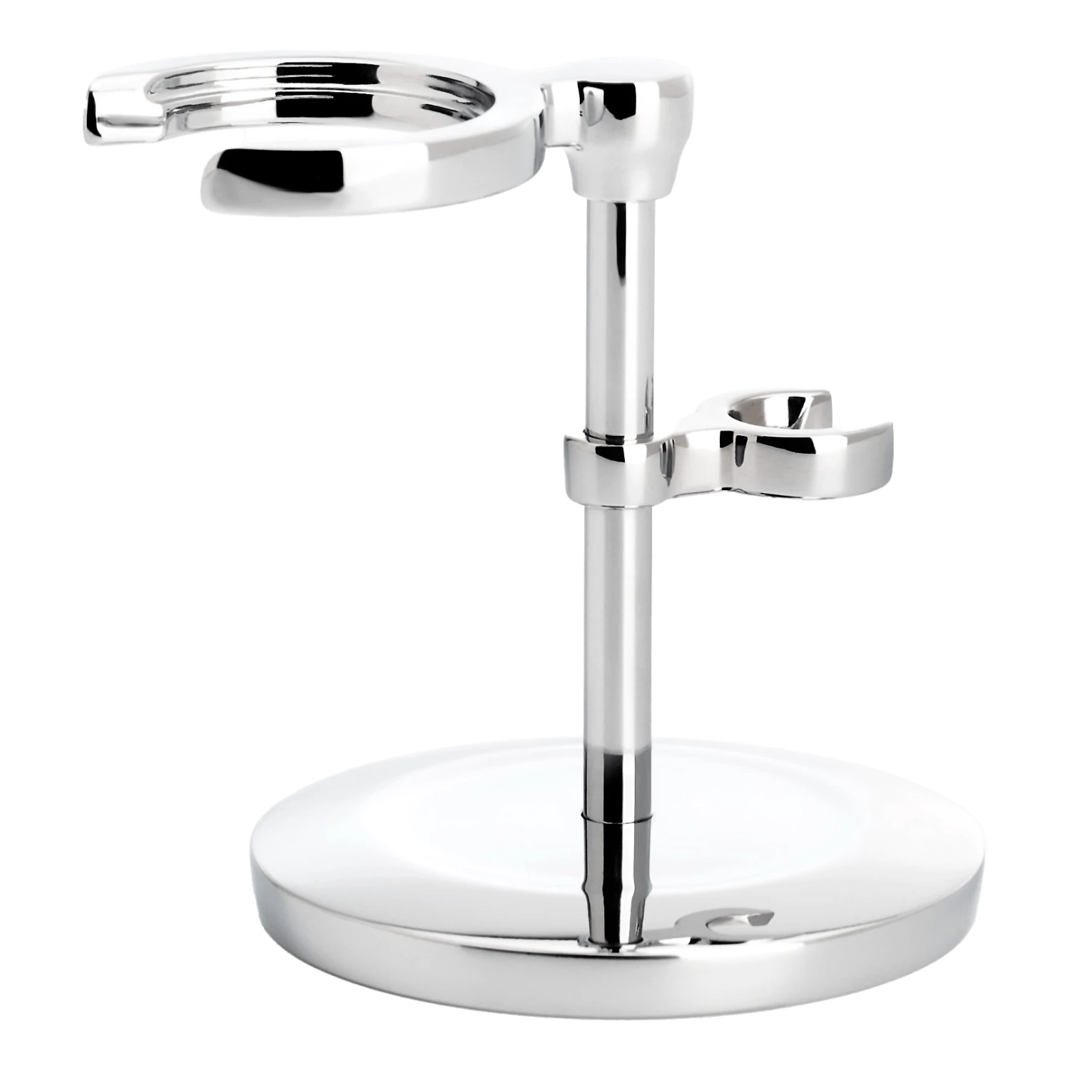 Et solid stativ av forkrommet messing. En stilig måte å oppbevare en barberhøvel og barberkost på!