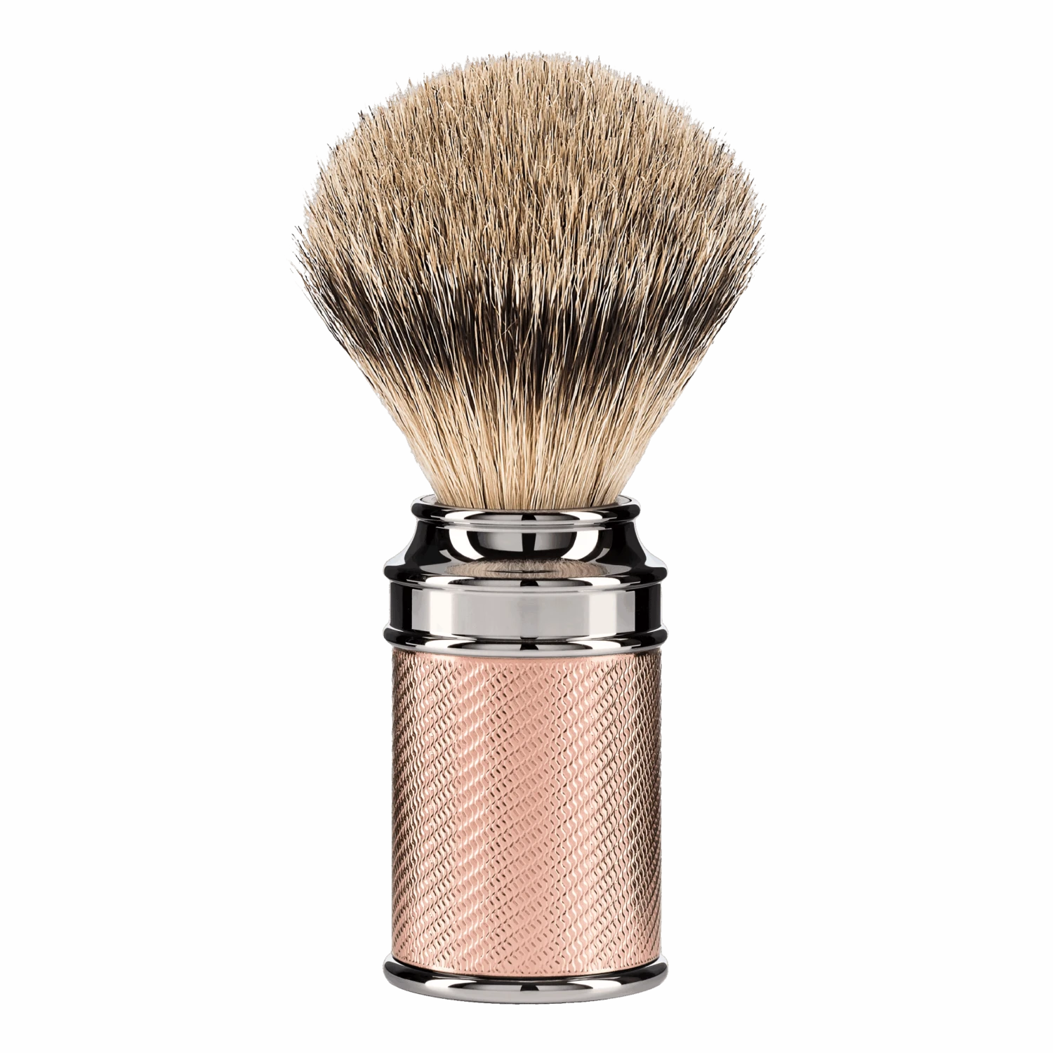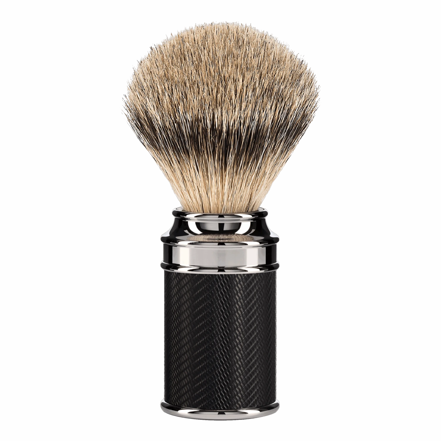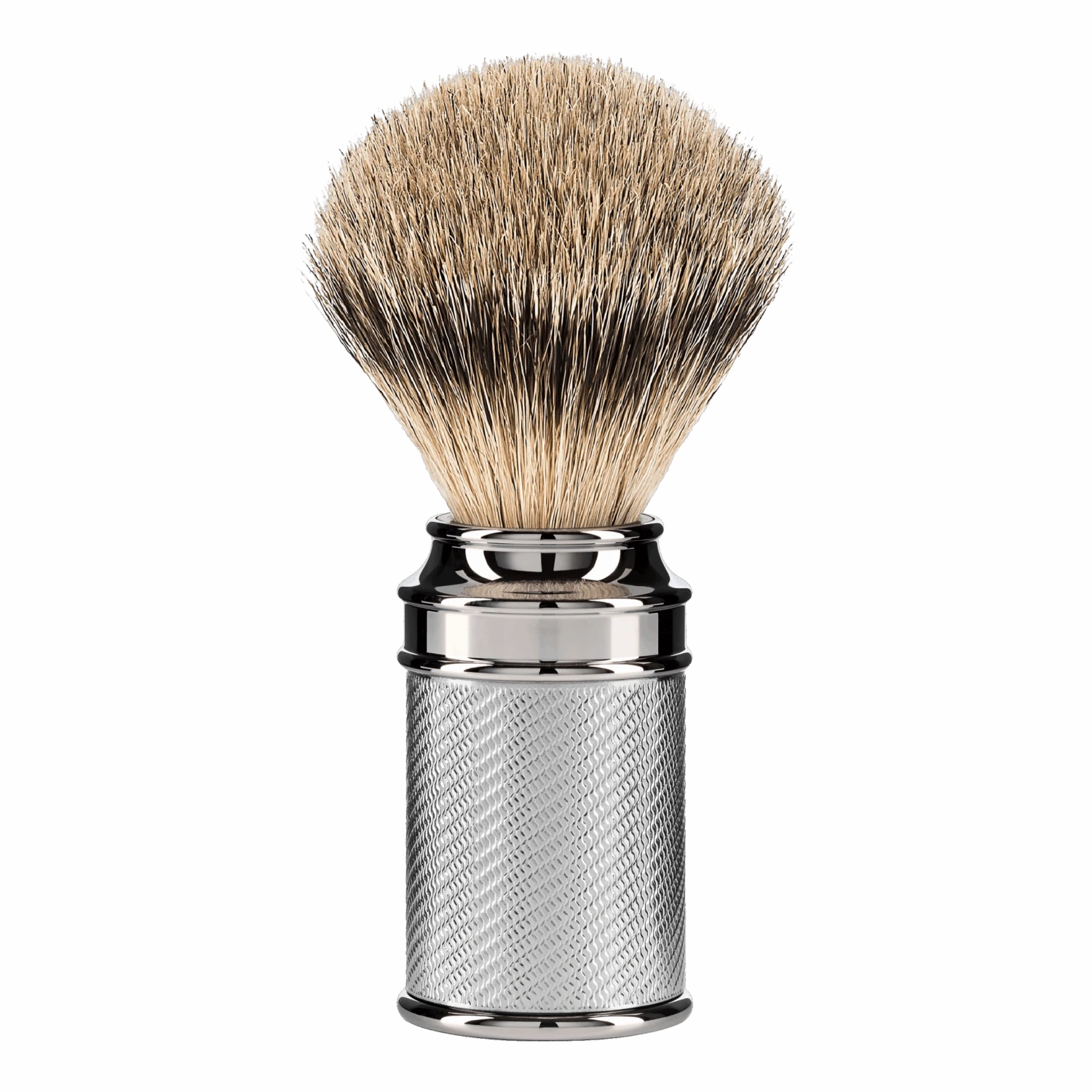 En meget stilig barberkost med bust av Silvertip grevlinghÄr. Dette er den beste hÄrtypen og gir et meget godt barberskum! Skaftet er stÞpt i messing, belagt med nikkel, for sÄ Ä bli forkrommet. Du kjenner kvaliteten og vekten nÄr du holder denne i hÄnda.