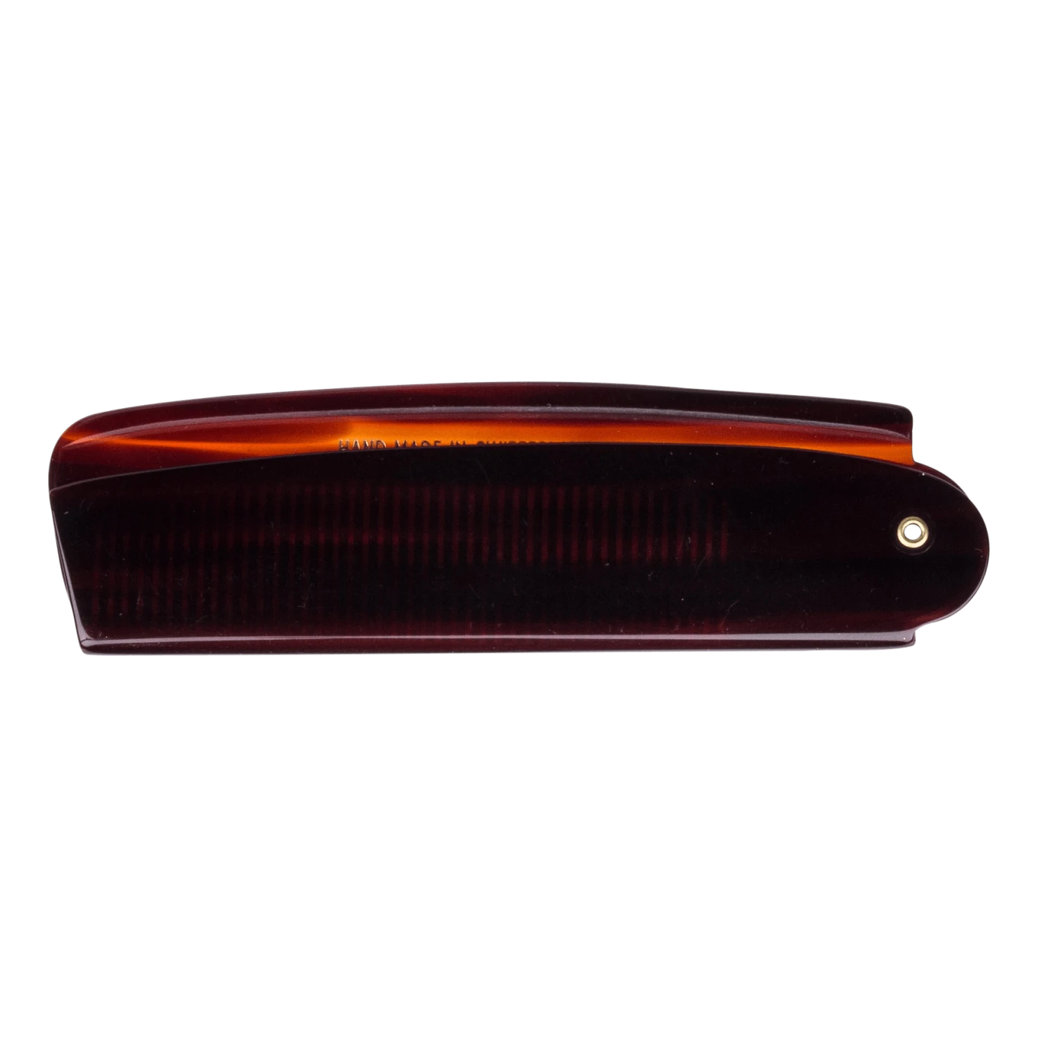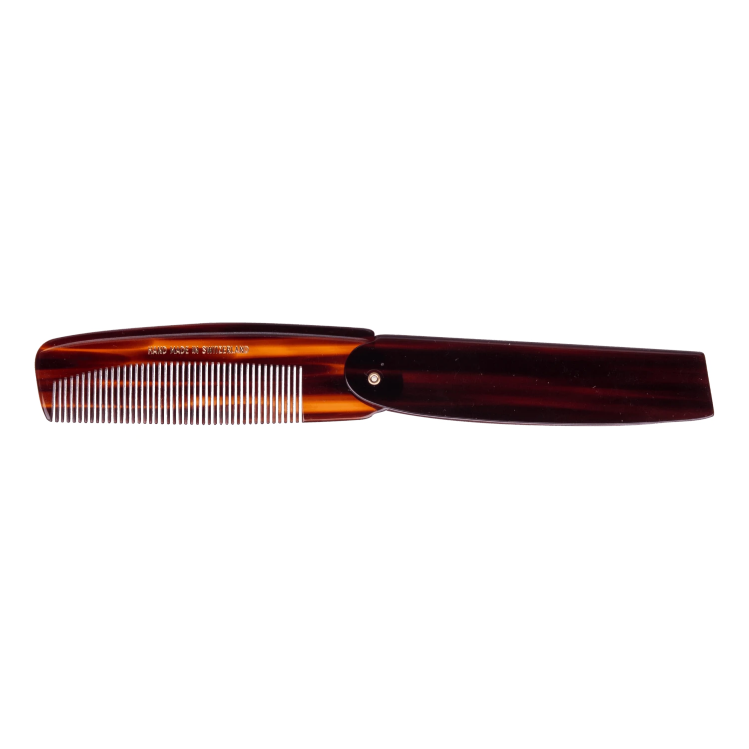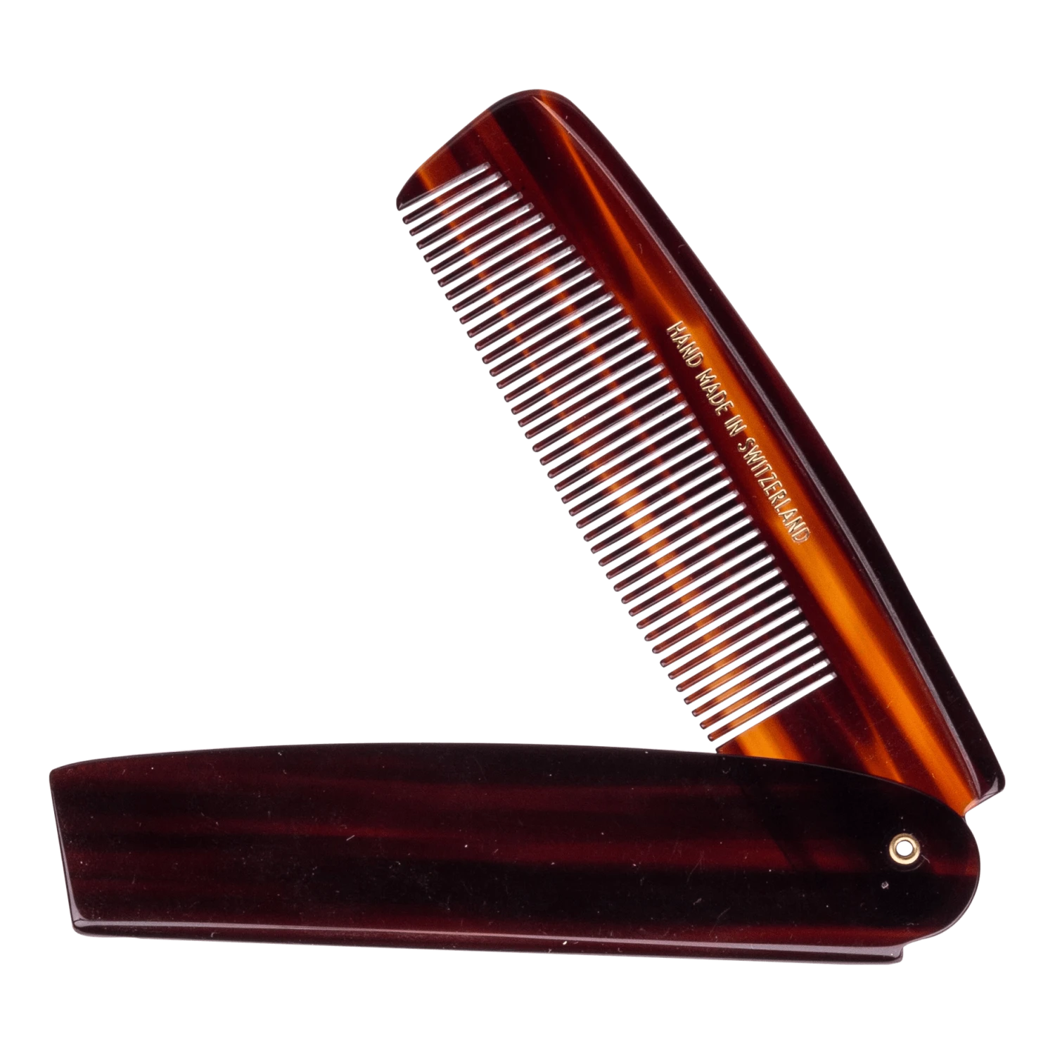 Sammenleggbar lommekam for deg som Þnsker Ä holde hÄret og skjegget i perfekt stand, uansett hvor du befinner deg. Denne kammen er hÄndlaget i Sveits og er laget av celluloseacetat, et materiale utvunnet fra organisk materiale. Prosessen begynner med Ä klemme celluloseacetatet til en solid blokk, som deretter blir delt opp i plater. Hver plate blir hÄndsagd og polert for Ä oppnÄ enestÄende kvalitet og finish.