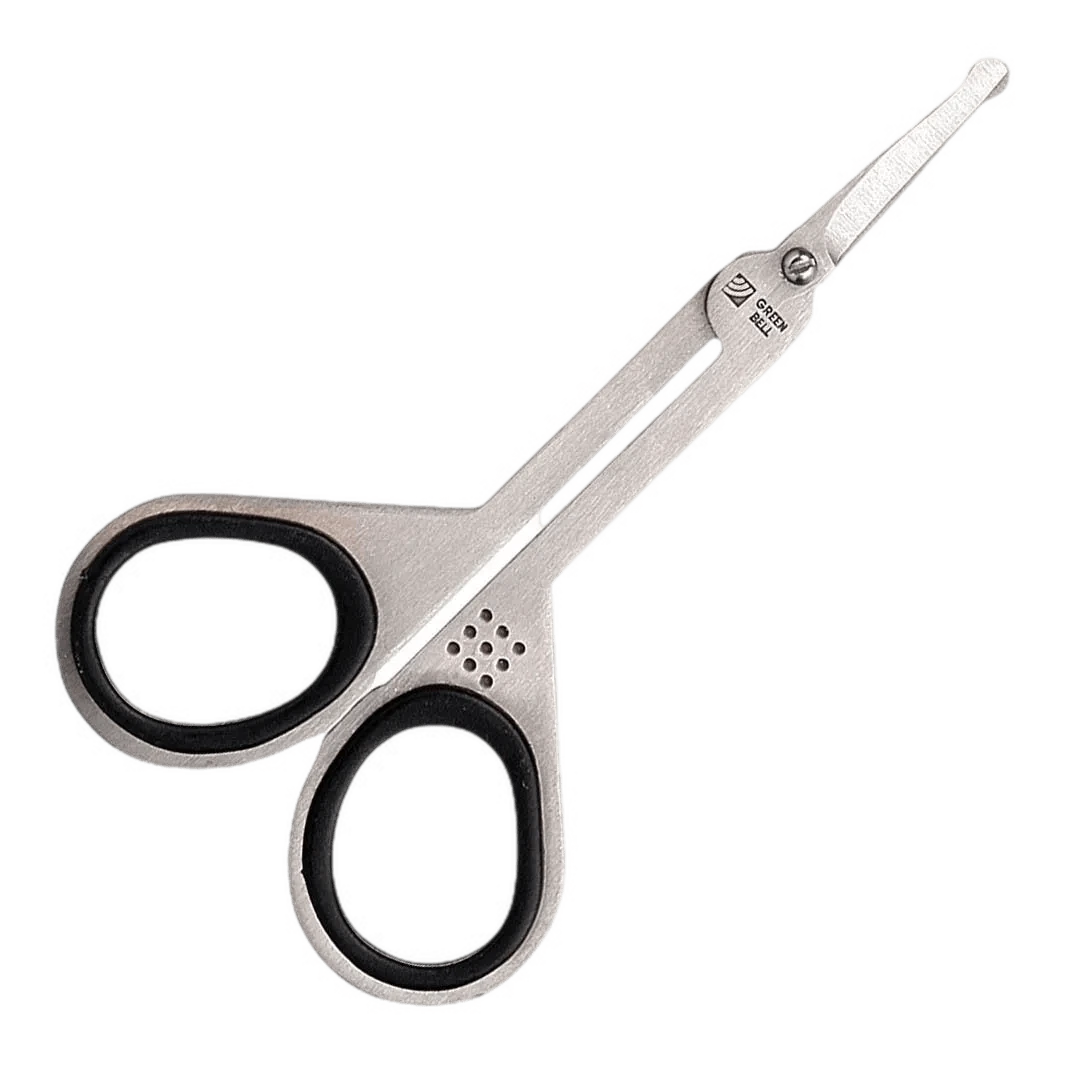 En saks med avrundede tupper, perfekt for stussing av nesehÄr, gir deg muligheten til Ä opprettholde en velstelt look med presisjon og sikkerhet. Laget av rustfritt stÄl, sikrer denne saksen langvarig holdbarhet og motstand mot rust og slitasje. De gummibelagte ringene gir ekstra komfort under bruk, noe som gjÞr det enklere Ä hÄndtere, selv ved lengre stussingsÞkter.