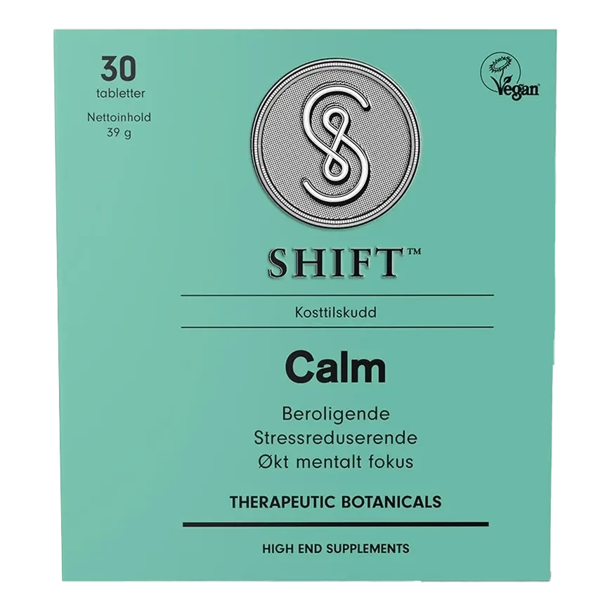 SHIFT Calm bestÄr av en kombinasjon av fire potente biologiske plantematerialer. GrÞnn te ekstrakt, og urtene safran, melisse og Mucuna pruriens (Juckbohn). Hver for seg har de egenskaper som bidrar til den gode forenede effekten, takle stress, berolige sinnet og gi en avslappet fÞlelse og ro. Disse vil ogsÄ kunne gi en positiv effekt pÄ konsentrasjonen. Tidligere navn: SuperCalm