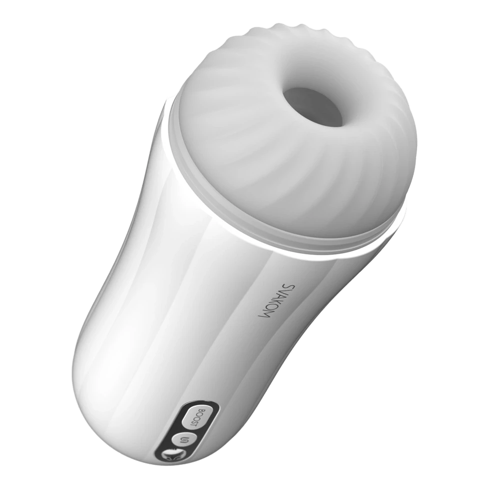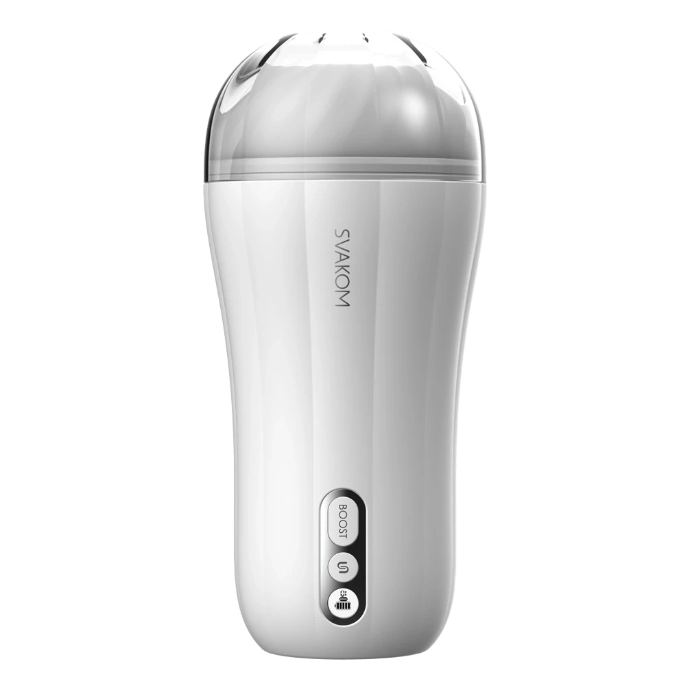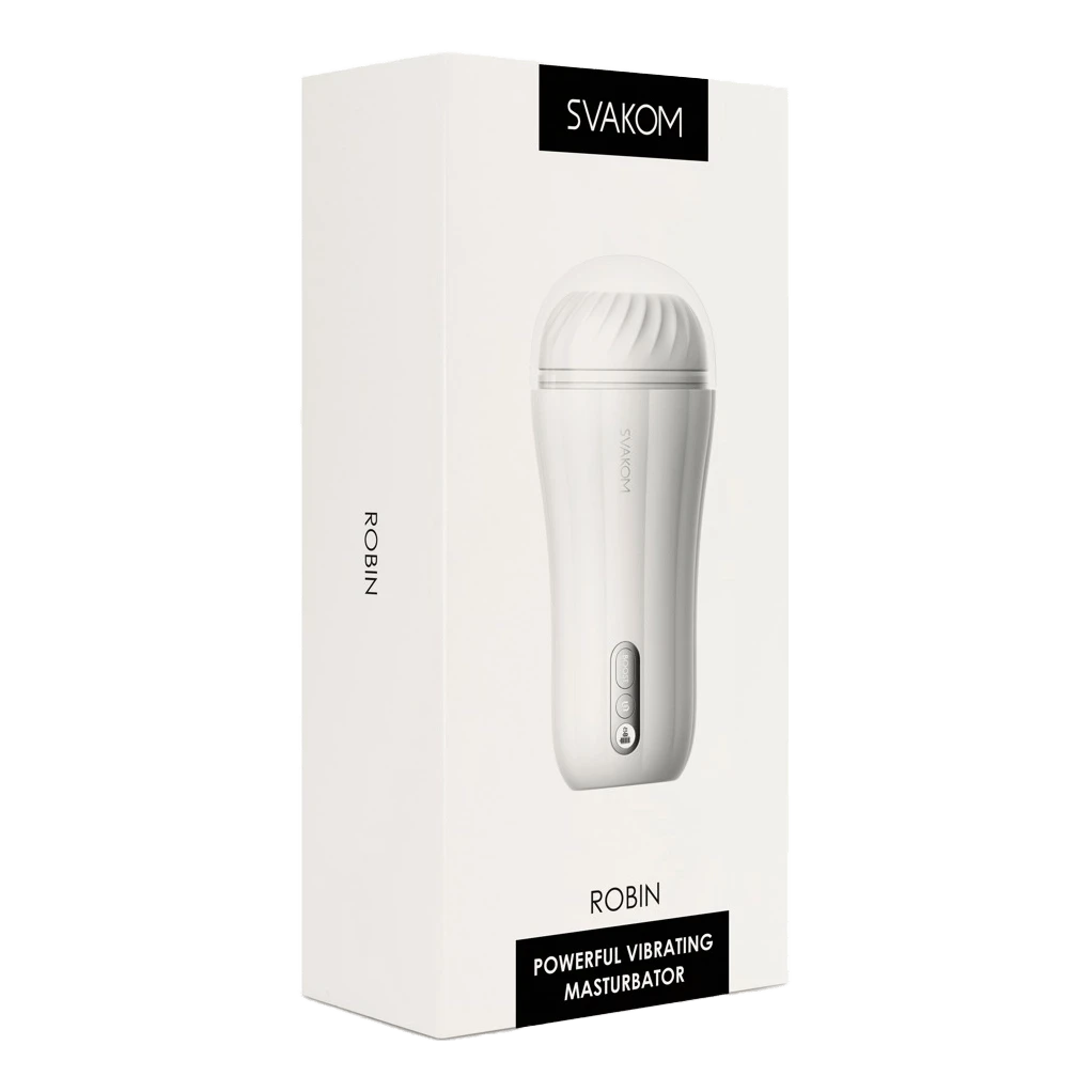 HÞyteknologisk onani med Robin fra Svakom. Stimulerer penis med 5 intense og ekstraordinÊre vibrasjonsmoduser som perfekt kombinerer kraft og bevegelse. Den har ogsÄ en unik boost-funksjon som enkelt aktiveres ved Ä trykke pÄ en knapp og lar en bruker nÄ et intenst klimaks pÄ kort tid. Det praktiske LED-displayet viser de forskjellige modusene og ogsÄ batterinivÄet.