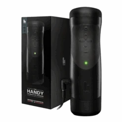 The Handy er en masturberingsmaskin som har fÄtt meget gode anmeldelser og omtale i blant annet VG. Den kraftige motoren kan justeres med opptil 10 slag i sekundet og justeres enten via knappene eller medfÞlgende app. The Handy kan kobles til internett via kryptert WiFi og Bluetooth. Lek med partner, koble til VR-briller, synkroniser med filmer pÄ nett og mer.