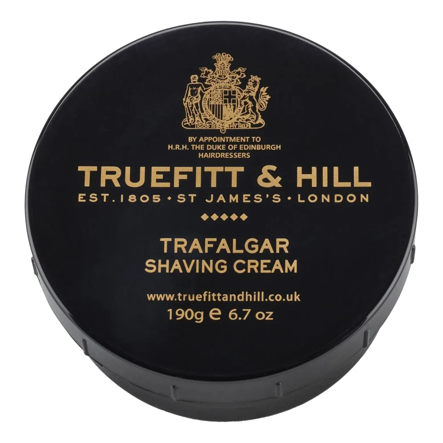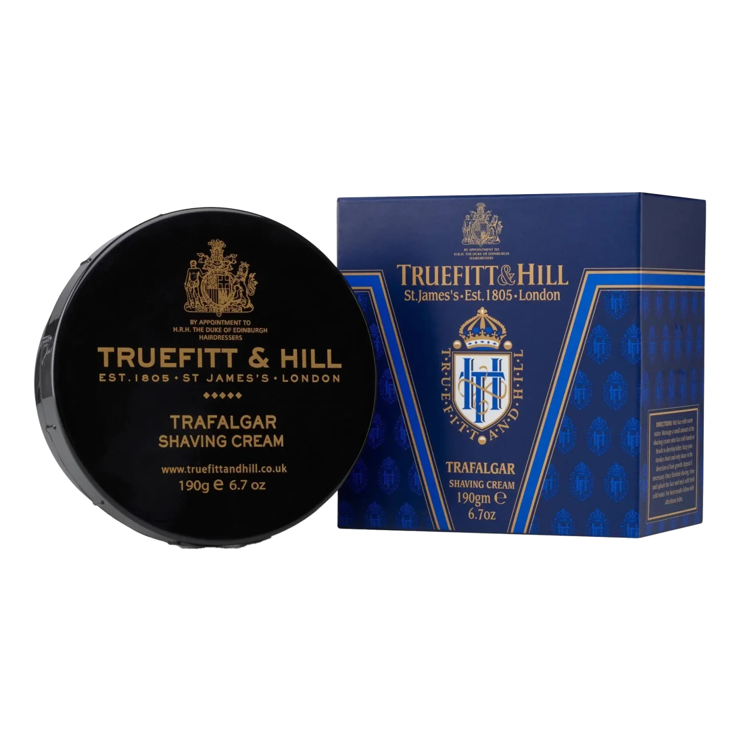 Duften Trafalgar er en krydret og frisk komposisjon med toppnoter av sedeltre, sandeltre og et hint av jasmin. Denne unike duften gir en maskulin og sofistikert opplevelse som varer gjennom dagen. Barberkremen er egnet for alle hudtyper.