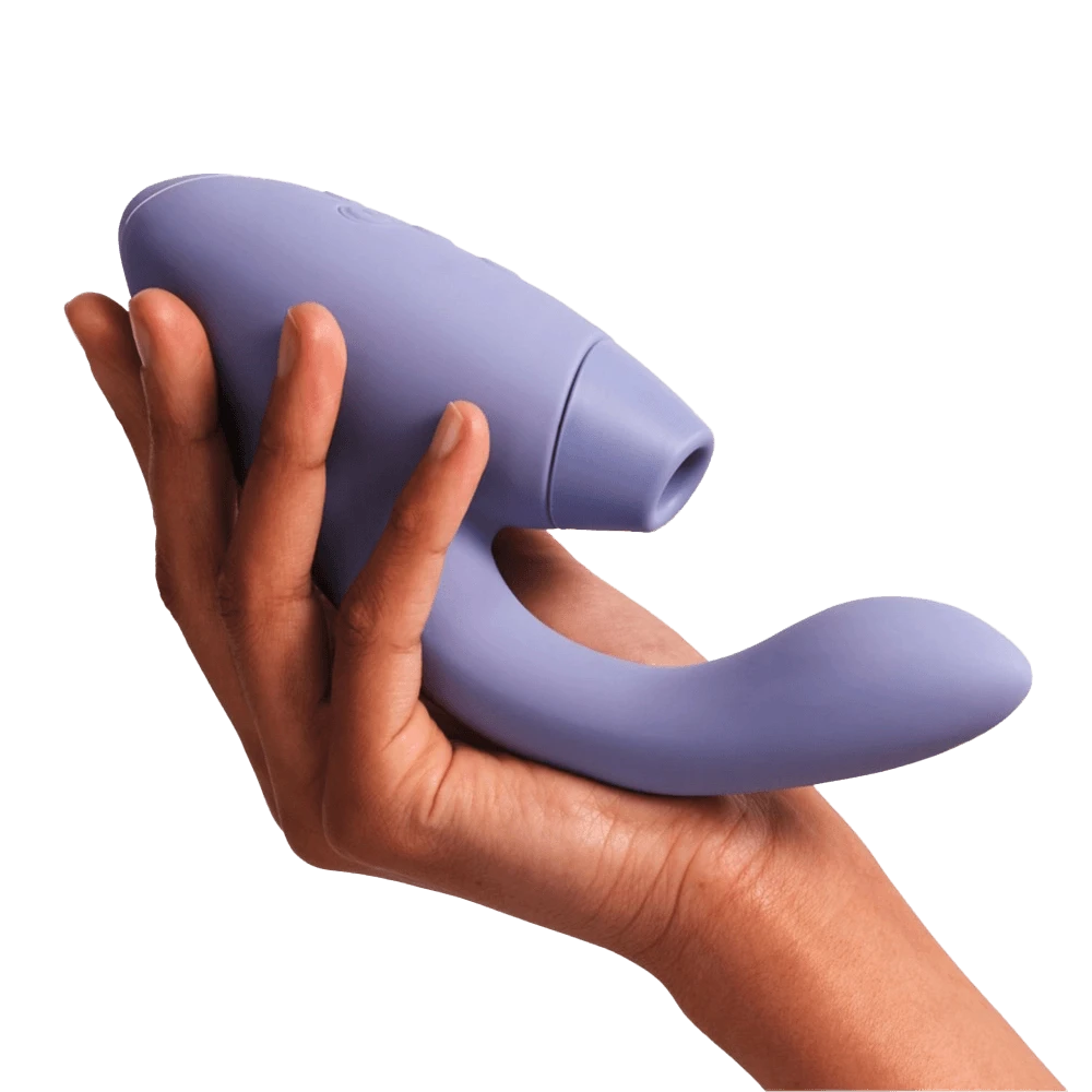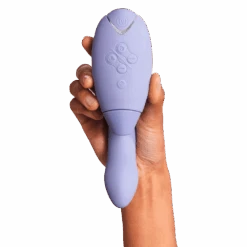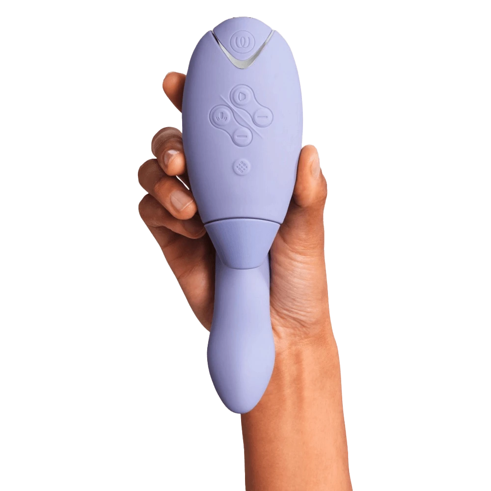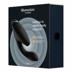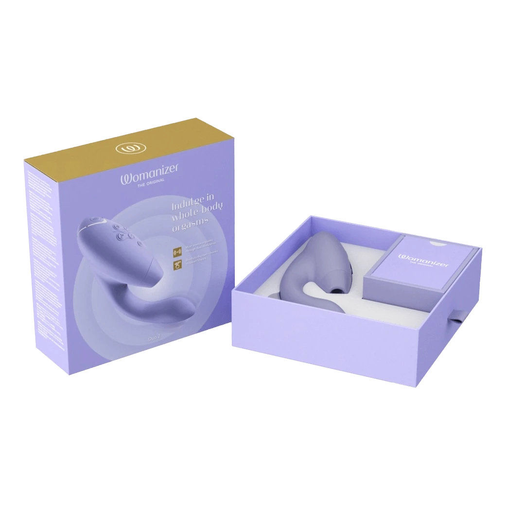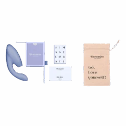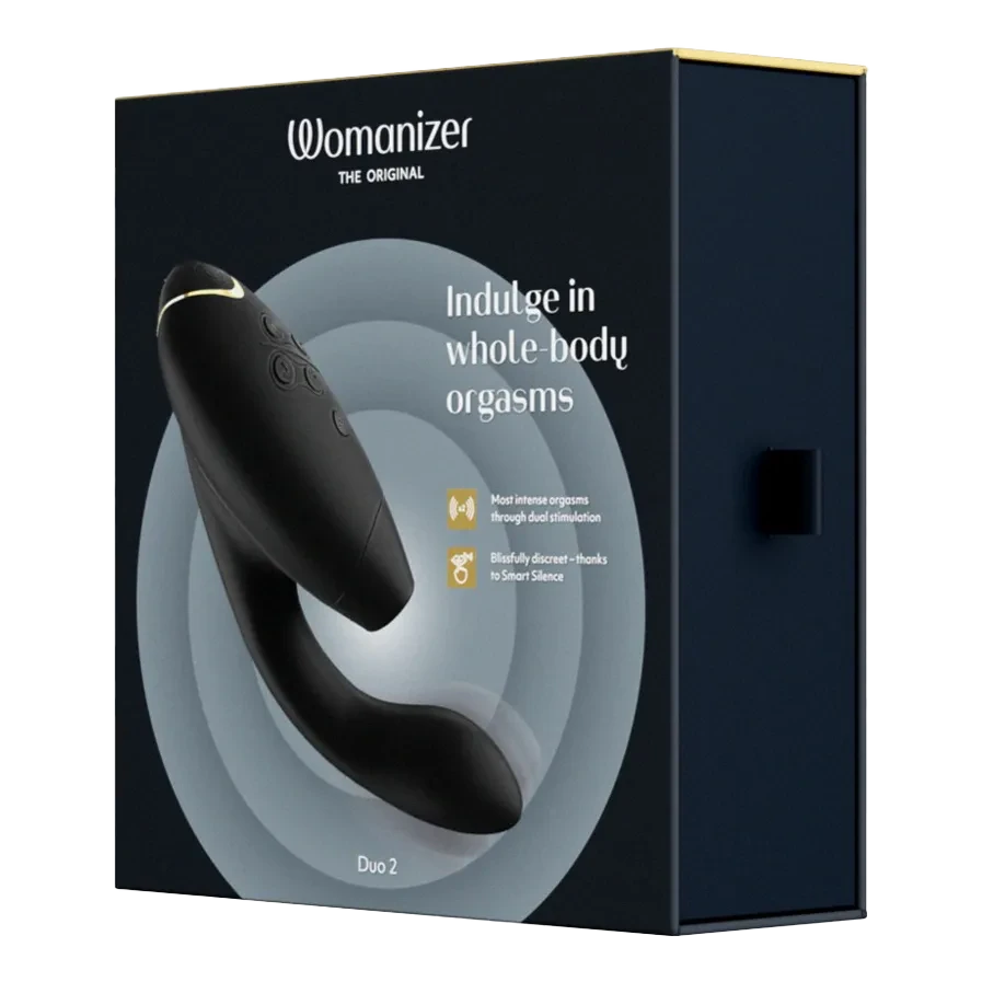Duo 2 fra Womanizer kombinerer den innovative Pleasure Air-teknologien med kraftig G-punktstimulering, og gir deg en opplevelse som er bÄde intens og tilfredsstillende. Den klassiske Womanizer-hetta stimulerer klitoris, mens den fleksible vibratorarmen tilpasser seg din anatomi for optimal komfort og effektivitet. Med hele 12 intensitetstrinn for klitorisstimulering og 14 justerbare nivÄer for G-punktet, kan du skreddersy opplevelsen etter egne preferanser. I tillegg har du 10 vibrasjonstrinn som kan justeres uavhengig av de andre funksjonene.