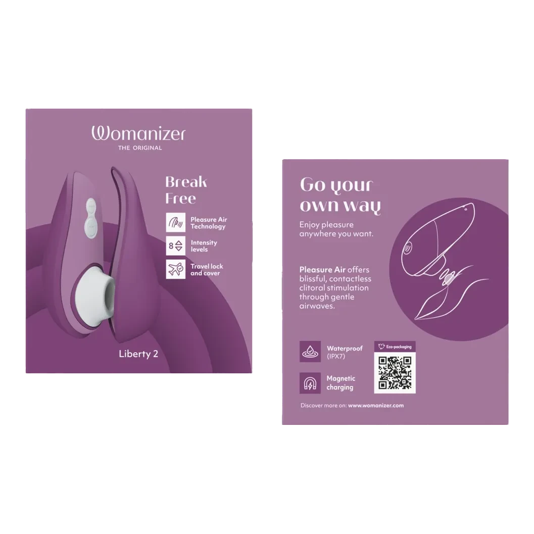 Den stillegÄende Liberty 2 fra Womanizer er designet for deg som Þnsker en ny dimensjon av nytelse. Med den velprÞvde Pleasure Air-teknologien stimulerer dette leketÞyet klitoris med milde luftbÞlger, uten direkte kontakt. Dette gir en behagelig opplevelse uten risiko for overstimulering, noe som kan fÞre til flere orgasmer pÄ kort tid.