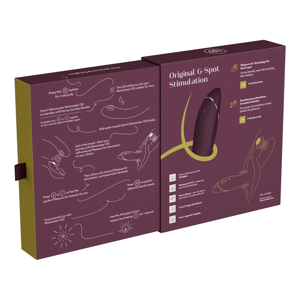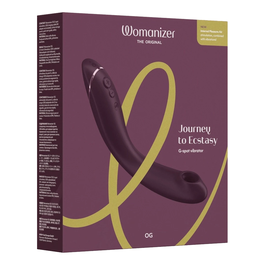 Womanizer OG er en innovativ stimulator som kombinerer den patenterte Pleasure Air-teknologien med vibrasjon, og tar opplevelsen til nye hÞyder. Den anatomisk utformede, buede formen er designet for Ä stimulere bÄde klitoris og G-punktet, noe som gir en intens og tilfredsstillende opplevelse. Med sin fleksible og smidige soft-overflate er den enkel Ä fÞre inn, og tilpasser seg din anatomi og bevegelser for optimal komfort.
